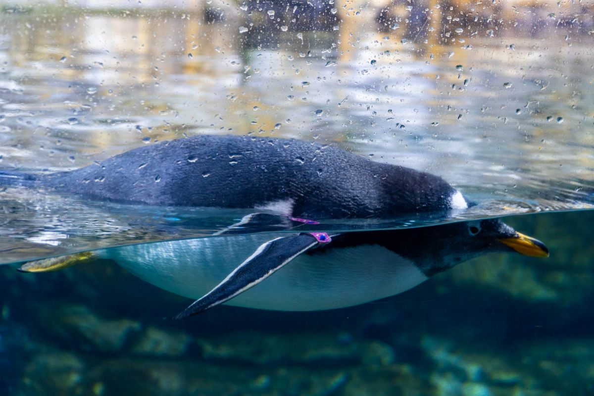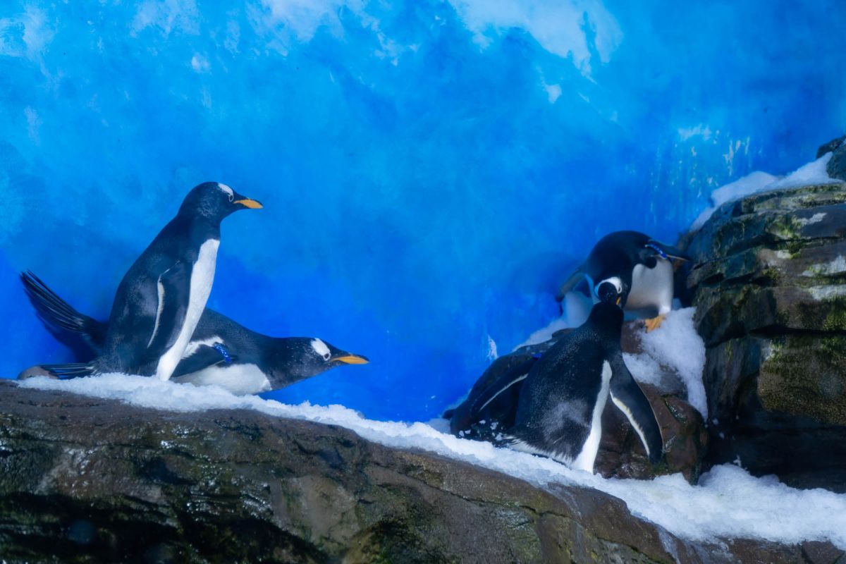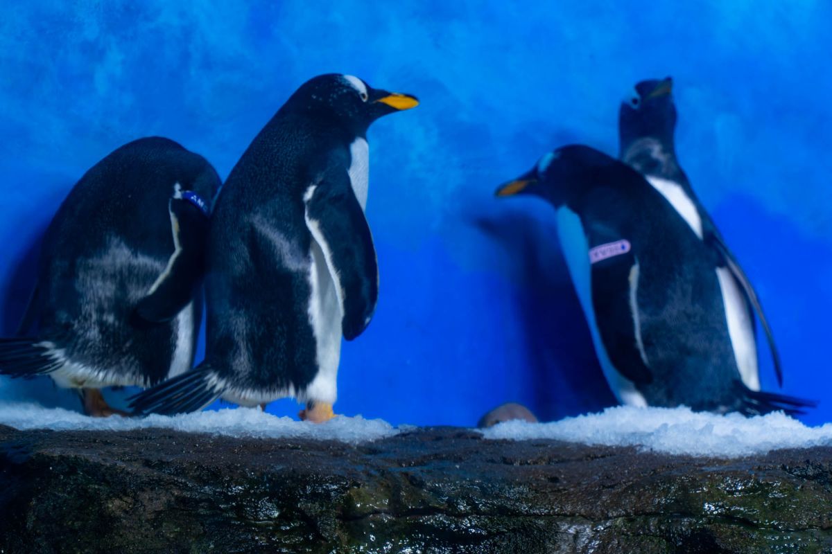 Колония пингвинов является главным героем этого воссоздания скалистого утеса с местами для откладывания яиц и выращивания детенышей.