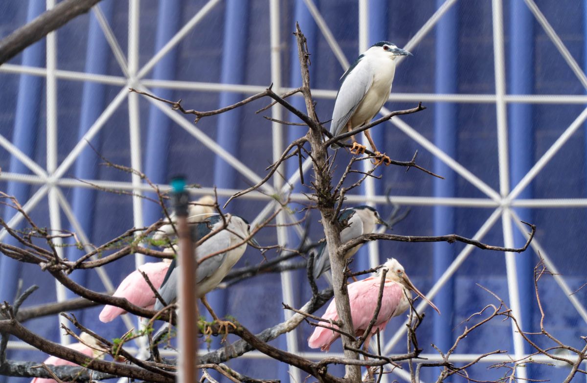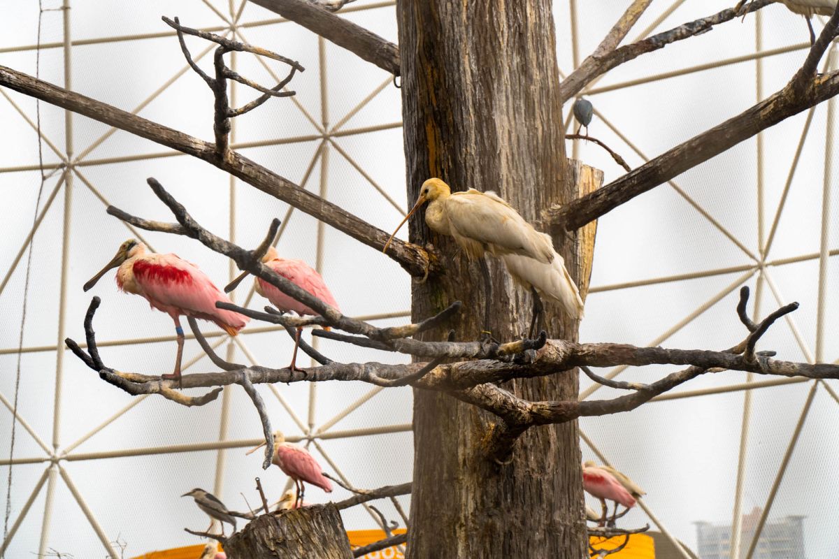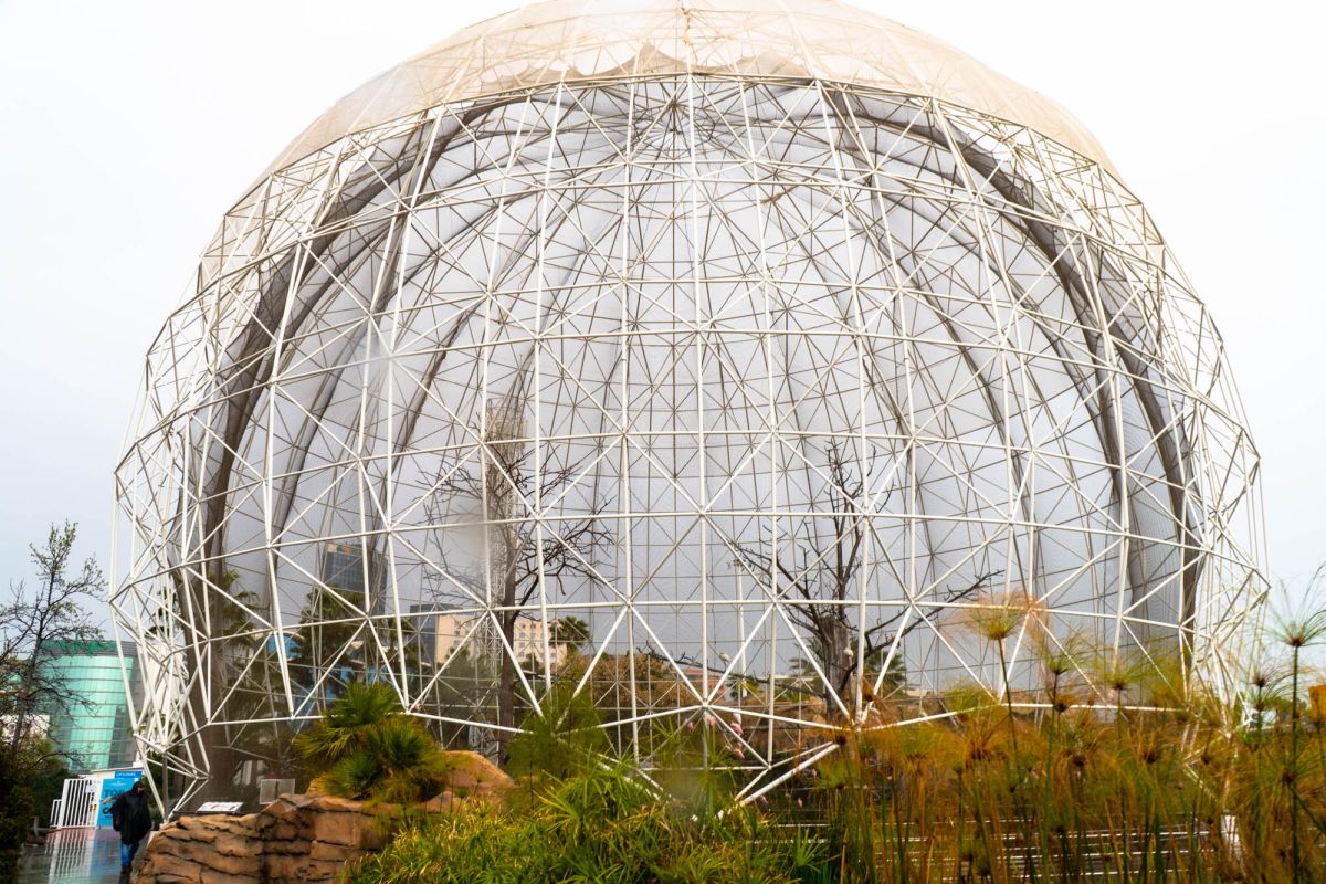 Впечатляющая сфера высотой 26 метров имитирует среду двух самых уникальных влажных зон на планете: американских мангровых болот и средиземноморских болот.