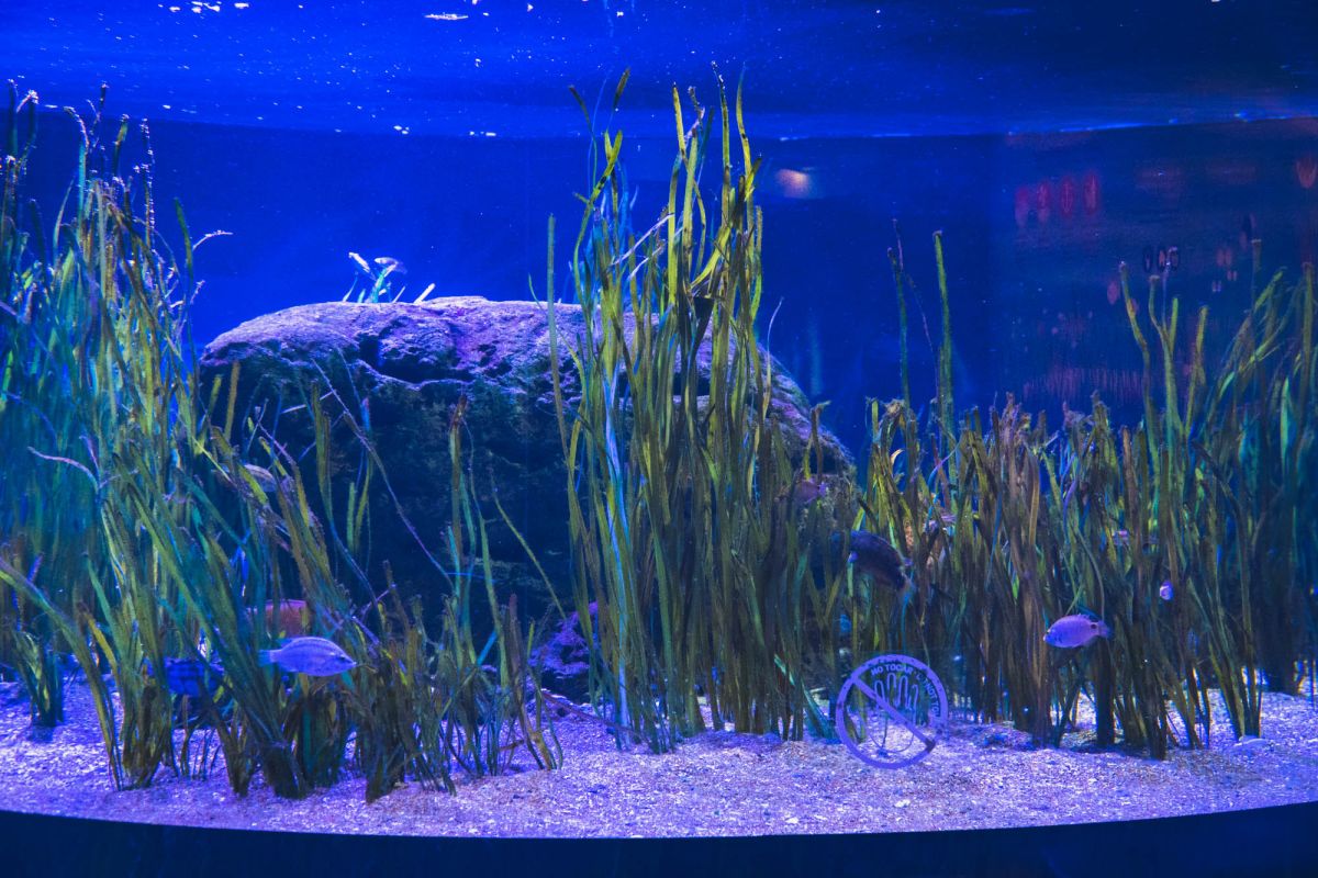 Это показывает часть биологического богатства Средиземноморья через выставку из девяти аквариумов, каждый в разном формате в зависимости от представленной среды обитания, с примерно 7400 экземплярами рыб и беспозвоночных.