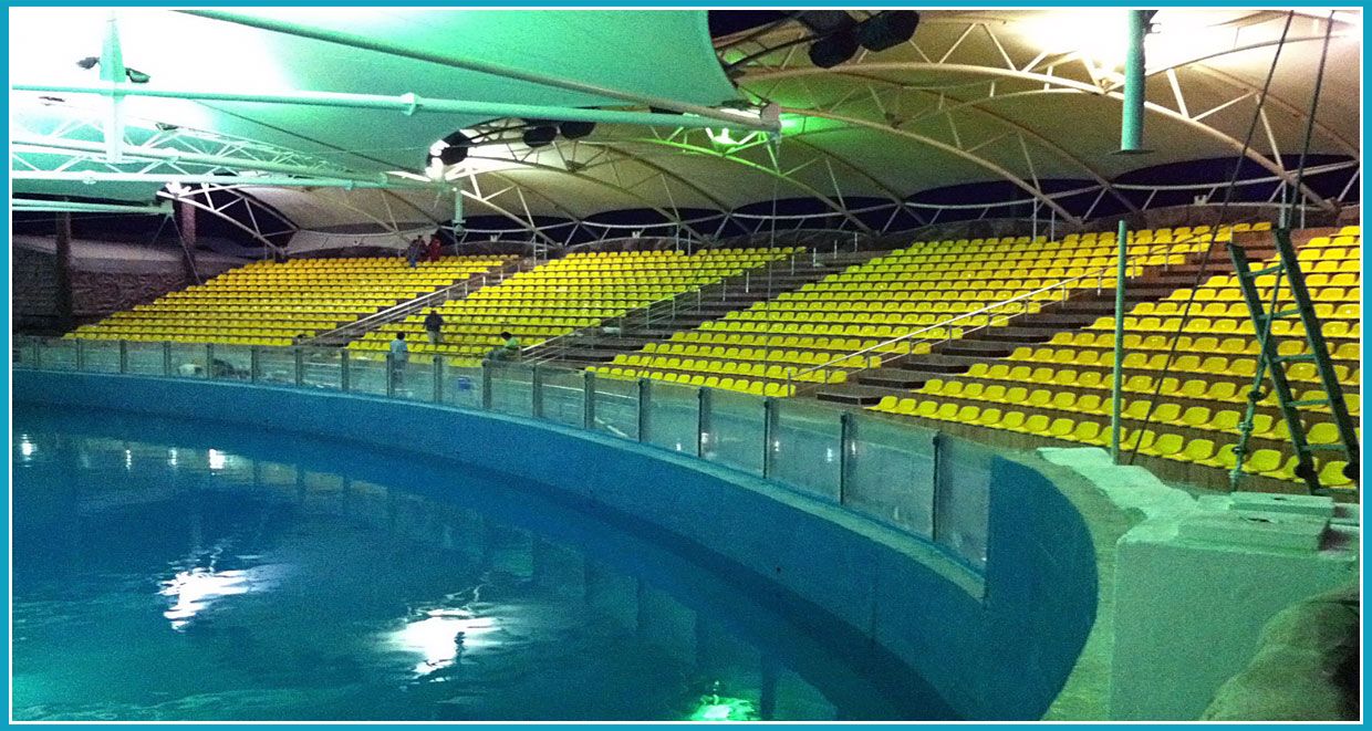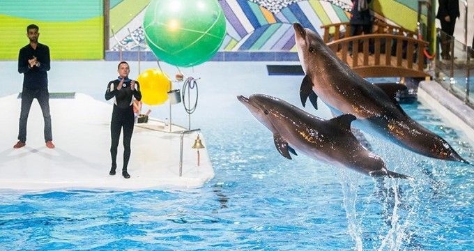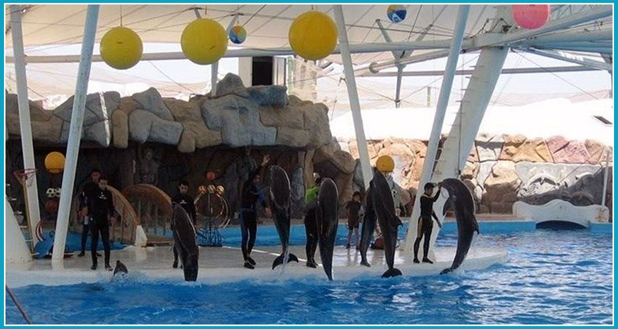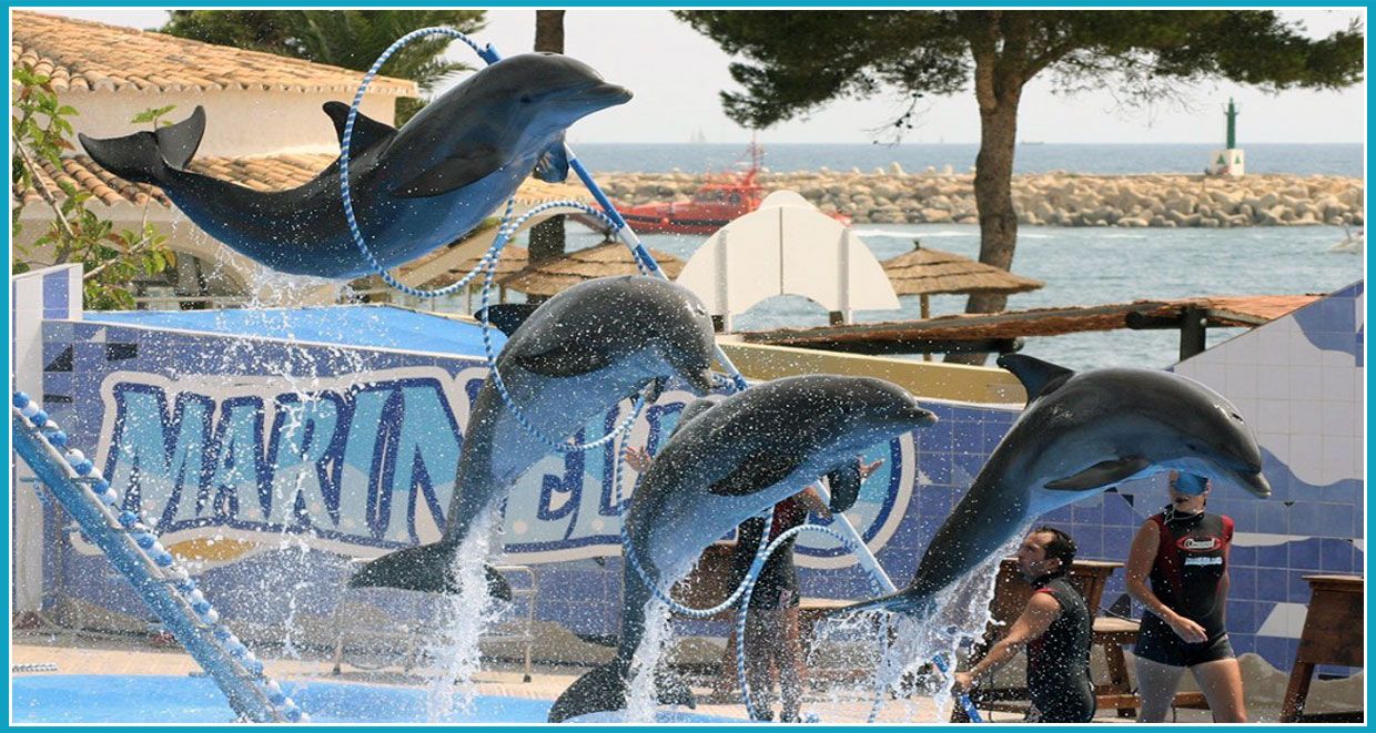 Дельфинарий включает в себя самый большой искусственный бассейн на острове, и в нем представлены дельфины, морские львы и белые киты.