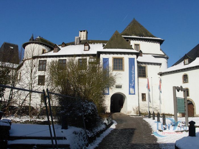 Замок Клерво расположен на севере Люксембурга, на лесистых склонах Арденнских гор, в излучине реки Клерв. Замок воздвигнут на скале Лей, на высоте 365 метров над уровнем моря. Самая старая часть замка (Западное крыло), была построена в 1129 году. Первым владельцем замка был граф Жерар де Спонхейм, брат графа Вианденского. В последующие столетия замок принадлежал влиятельным семействам Бранденбург и Ланнуа, которые значительно расширили и укрепили его: были построены две башни - одна с южной стороны, которую использовали в качестве тюрьмы, и вторая - "Башня ведьм" у главных ворот. В XVII веке маленькие жилые помещения и конюшни северного крыла были перестроены в роскошные гостиные и большой Рыцарский Зал. Четверть века спустя, Альберт Эжен де Ланнуа расширил хозяйственные помещения, выстроив во дворе конюшни и амбары, в 1671 году у входа в замок построили домик сторожа, в котором сегодня находится кафе-ресторан Au Vieux Chateau. В 1887 году хозяйственные постройки были снесены, а из их камней в парке напротив замка был построен особняк графа де Берлемона. В последующие годы Замок Клерво сменил нескольких владельцев. Во время Второй мировой войны, в битве при Арденнах 17 декабря 1944 года, замок получил большие разрушения. После войны замок стал собственностью государства Люксембург и был восстановлен. В 1970 году в западном крыле замка расположилась выставка Моделей старинных замков Люксембурга. Первый этаж восточного крыла отдан для нужд городской администрации. В 1974 году в Замке Клерво был открыт Музей битвы в Арденнах, а с 1994 года восточное крыло замка занимает всемирно известная выставка The Family of Man (Семья человеческая) фотографа Эдварда Стейхена, иллюстрирующая основные аспекты человеческой жизни. Для экспозиции из более двух миллионов фотографий были отобраны 503 снимка 273 фотографов из 68 стран. В экспозицию были включены как известные работы Вернера Бишофа "Мальчик-флейтист на дороге в Перу" и Юджина Смита "Дорога в рай", так и простые любительские фотографии. Выставка пользуется огромным успехом. Прежде чем получить постоянную прописку в Замке Клерво, она была показана в 38 странах, с 1955 по 1962 годы её посетили более 9 миллионов человек, а в 2002 году The Family of Man внесена в Международный реестр "Память мира" ЮНЕСКО.