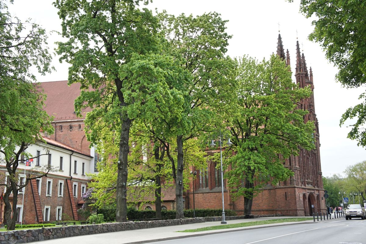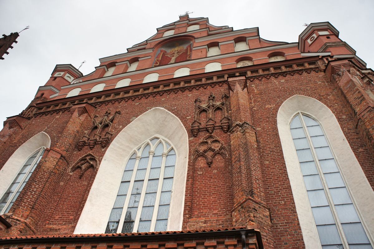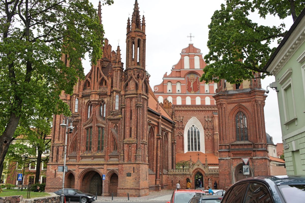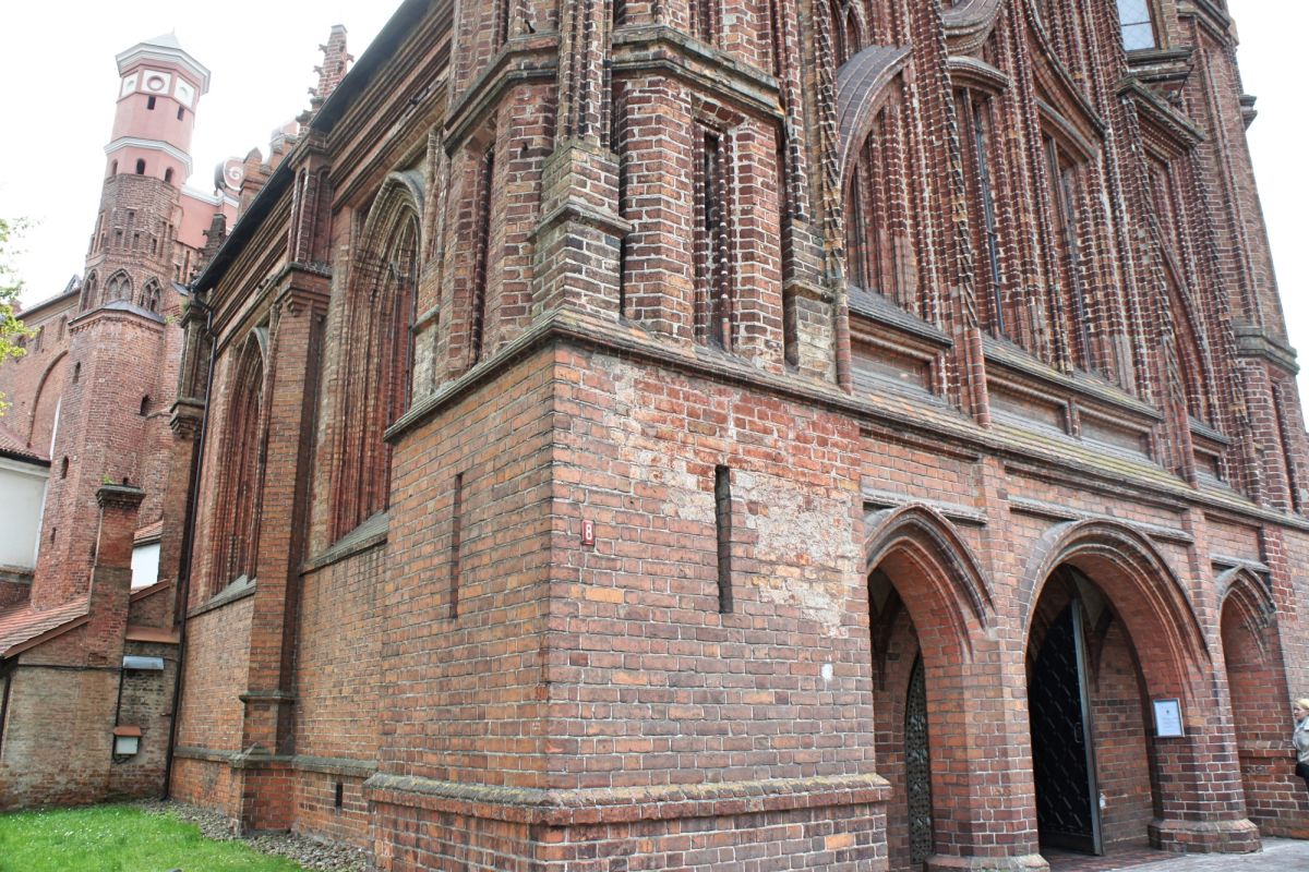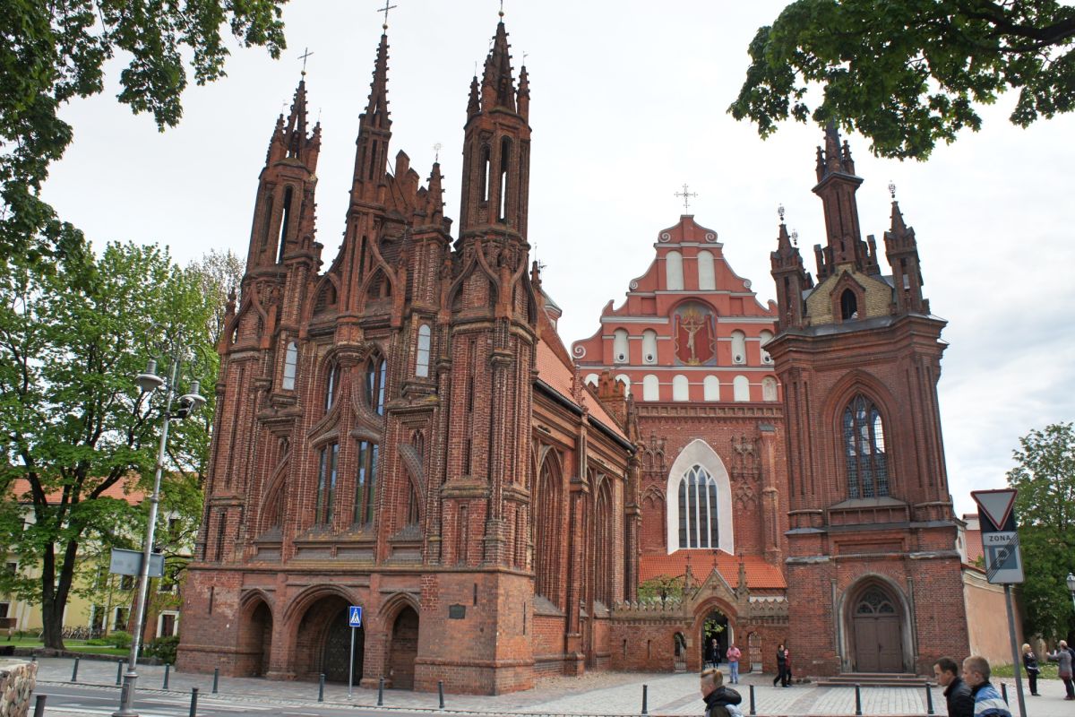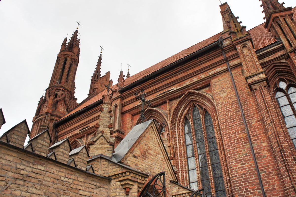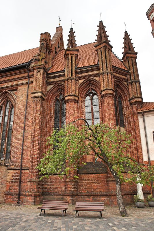 Костёл Святой Анны по праву считается одним из самых красивых и известных храмов Вильнюса. Изящный, стремительный, лёгкий и, в то же время, величественный костёл является шедевром поздней готики. Точная дата строительства неизвестна, первые упоминания о костёле датированы 1501 годом. Мнения историков о времени постройки и назначении храма разделились, но, скорей всего, он был воздвигнут в 1495 - 1500 годах. В вопросе кто был архитектором здания, мнения учёных также кардинально расходятся. В некоторых исторических документах есть упоминания об архитекторе Михаиле Энкингере, который в 1492 году был вызван из Гданьска в Вильнюс Великим князем Литовским Александром Ягеллоном, якобы для строительства Костёла Святой Анны. По другой версии храм был построен по проекту архитектора Бенедикта Рейта в том виде, в каком он сохранился до наших дней. Здание костёла небольшое, удлинённой прямоугольной формы, длиной 22 метра и шириной 10 метров. Боковые стены тонкие, с четырьмя парами стрельчатых окон. Между окнами, с внутренней и наружной стороны, выступают столбы. Они выполняют функцию контрфорсов, несущих тяжесть сводов. Главный фасад считают "не имеющим себе равных не только в литовской, но и во всей восточноевропейской кирпичной готической архитектуре". Он отличается разнообразием и декоративностью линий и форм. Наполеон Бонапарт был восхищён красотой костёла и выражал сожаление, что нельзя перенести храм в Париж. Для строительства костёла был использован жёлтый фасонный кирпич тридцати трёх различных форм. Интерьер костёла состоит из одного нефа, отделённого от пресвитерия высокой готической аркой. В северной части здания находятся ризница и галерея, соединяющая костёл Святой Анны и Бернардинский костёл. Справа находится колокольня, построенная в 1873 году в неоготическом стиле по проекту архитектора Чагина. За время своего существования Костёл Святой Анны неоднократно страдал от пожаров и разрушений, несколько раз восстанавливался и реставрировался. Нужно отметить, что костёл не закрывался ни во время Второй мировой войны, ни после. Он является одной из самых известных достопримечательностей Вильнюса, окутан множеством легенд и таинственных историй.