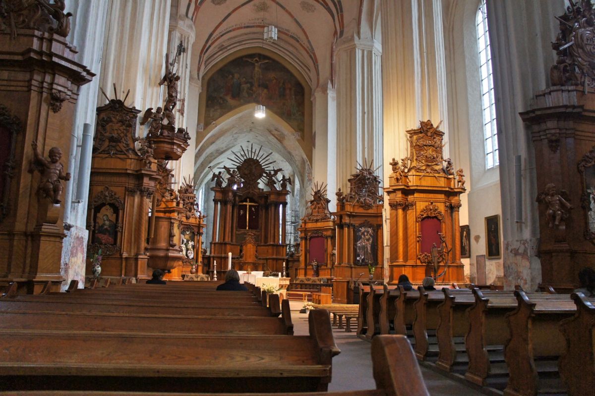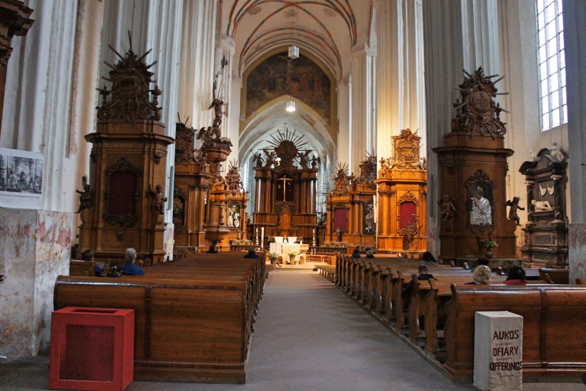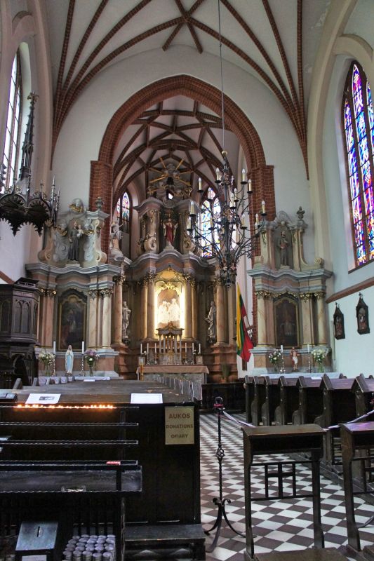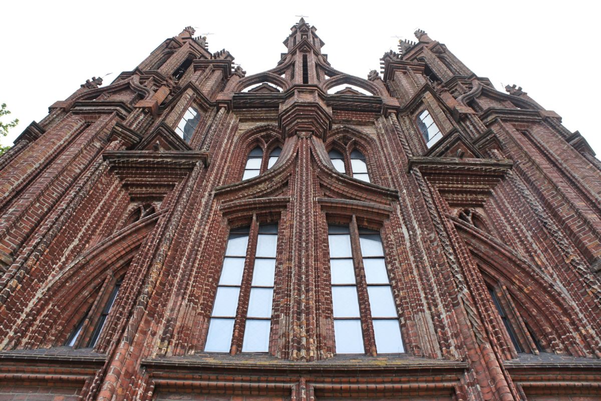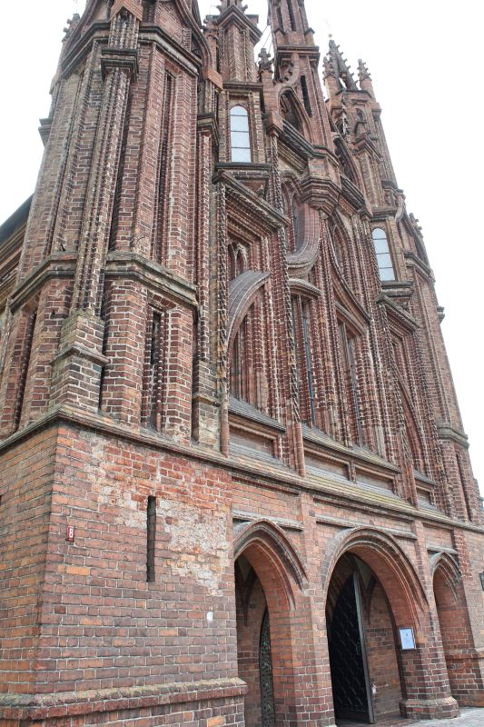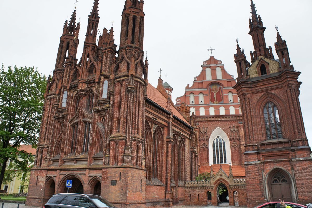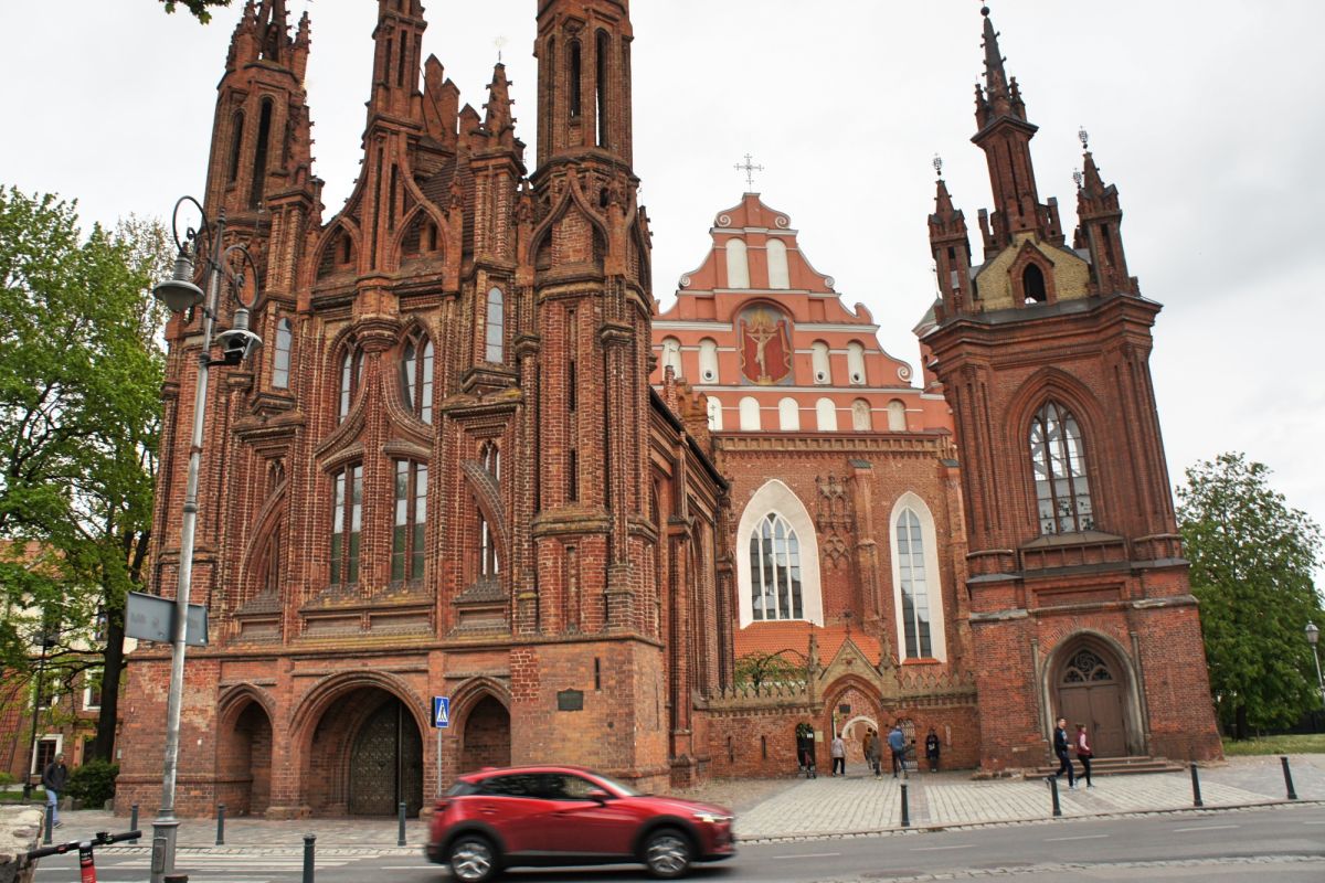 Костёл Святой Анны по праву считается одним из самых красивых и известных храмов Вильнюса. Изящный, стремительный, лёгкий и, в то же время, величественный костёл является шедевром поздней готики. Точная дата строительства неизвестна, первые упоминания о костёле датированы 1501 годом. Мнения историков о времени постройки и назначении храма разделились, но, скорей всего, он был воздвигнут в 1495 - 1500 годах. В вопросе кто был архитектором здания, мнения учёных также кардинально расходятся. В некоторых исторических документах есть упоминания об архитекторе Михаиле Энкингере, который в 1492 году был вызван из Гданьска в Вильнюс Великим князем Литовским Александром Ягеллоном, якобы для строительства Костёла Святой Анны. По другой версии храм был построен по проекту архитектора Бенедикта Рейта в том виде, в каком он сохранился до наших дней. Здание костёла небольшое, удлинённой прямоугольной формы, длиной 22 метра и шириной 10 метров. Боковые стены тонкие, с четырьмя парами стрельчатых окон. Между окнами, с внутренней и наружной стороны, выступают столбы. Они выполняют функцию контрфорсов, несущих тяжесть сводов. Главный фасад считают "не имеющим себе равных не только в литовской, но и во всей восточноевропейской кирпичной готической архитектуре". Он отличается разнообразием и декоративностью линий и форм. Наполеон Бонапарт был восхищён красотой костёла и выражал сожаление, что нельзя перенести храм в Париж. Для строительства костёла был использован жёлтый фасонный кирпич тридцати трёх различных форм. Интерьер костёла состоит из одного нефа, отделённого от пресвитерия высокой готической аркой. В северной части здания находятся ризница и галерея, соединяющая костёл Святой Анны и Бернардинский костёл. Справа находится колокольня, построенная в 1873 году в неоготическом стиле по проекту архитектора Чагина. За время своего существования Костёл Святой Анны неоднократно страдал от пожаров и разрушений, несколько раз восстанавливался и реставрировался. Нужно отметить, что костёл не закрывался ни во время Второй мировой войны, ни после. Он является одной из самых известных достопримечательностей Вильнюса, окутан множеством легенд и таинственных историй.