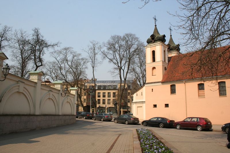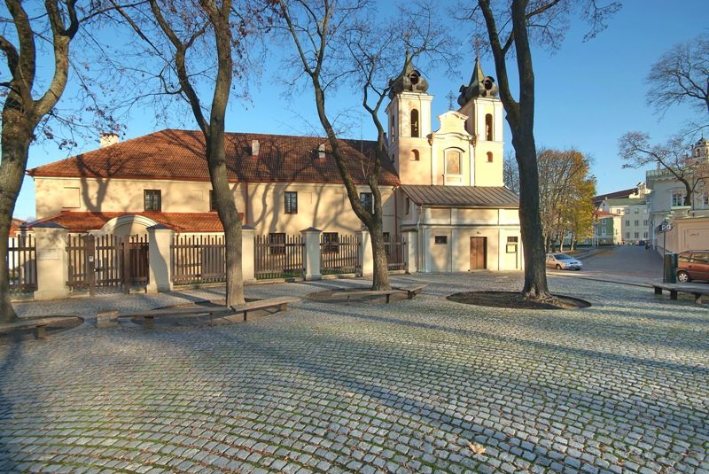 Ещё в 1543г., на месте настоящего костёла, Вильнюсский эпископ П.Алсенишкис построил готическую часовню. Дом, находящийся рядом с часовней, монахи бонифраты ХVII в. перестроили в костёл в стиле барокко. Это единственный костел в Вильнюсе, перестроенный из жилого дома. На самом большом алтаре костёла хранится чудотворное изображение св. Марии Снегине (Божьей Матери бонифратов). Божья Мать бонифратов изображена и на фреске фасада.