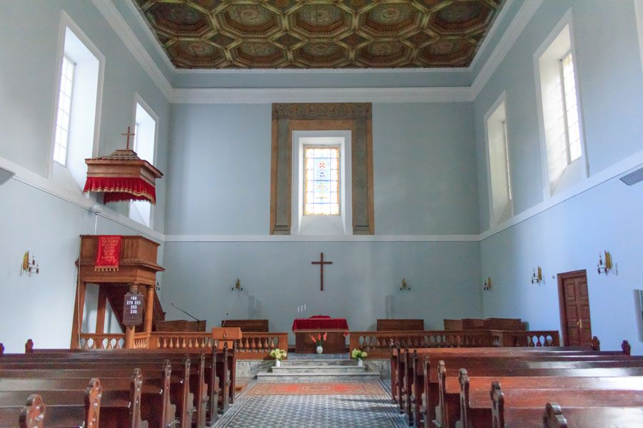 Этот костел евангелистов – реформаторов был построен в 1830 – 1835г.г. (автор архит. К.Подчяшинскис). К сожалению, стоявшие на фронтоне три скульптуры Казимераса Иельскиса были разрушены. Внутри были вмонтированы доски в память известным литовским кальвинам. Напротив молитвенного дома, на другой стороне улицы – бывшее старое кладбище евангелистов-реформаторов.