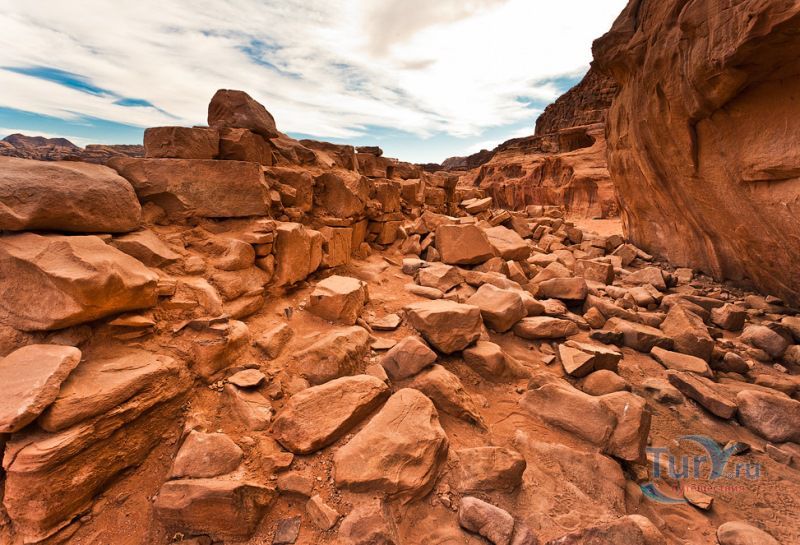 Пустыня Вади Рам, также называемая "Лунная долина", представляет собой Природный заповедник и является одним из чудес света. Вади Рам относится к каменистым пустыням, где туристы могут увидеть остатки древних колодцев, наскальные рисунки, причудливые скалы и скальные мосты, пустынные оазисы, каньоны, ущелья, обширные долины, покрытые песком. Туристам предлагают осмотреть скальный мост Бурда - самую высокую точку Вади Рам, "Семь столпов мудрости", Лоуренсов колодец, Набатейский храм, проехаться на верблюде, полетать на воздушном шаре над пустыней, провести ночь в традиционном бедуинском шатре, сотканном из козьей шерсти. На территории пустыни проживают несколько бедуинских племен. Вади Рам - это самая крупная долина Иордании с высохшими руслами рек, естественными скальными мостами-перешейками, высокими горами и холмами. С июня 2011 года пустыня Вади Рам включена в список Всемирного наследия ЮНЕСКО.