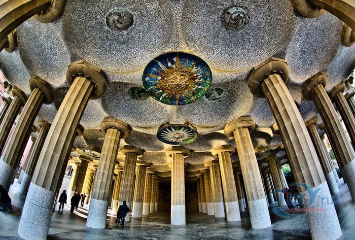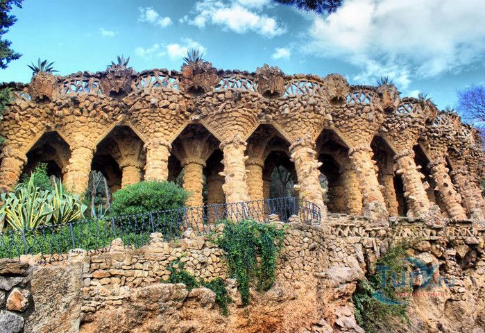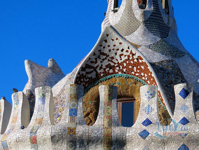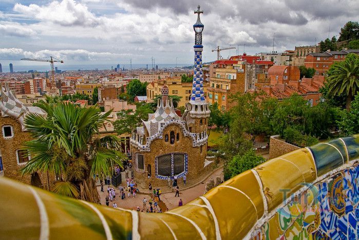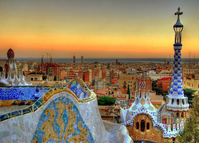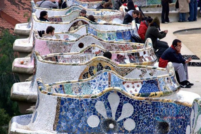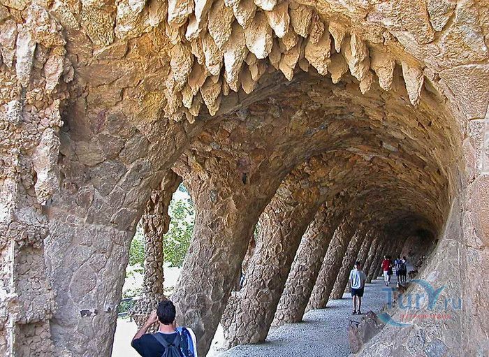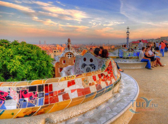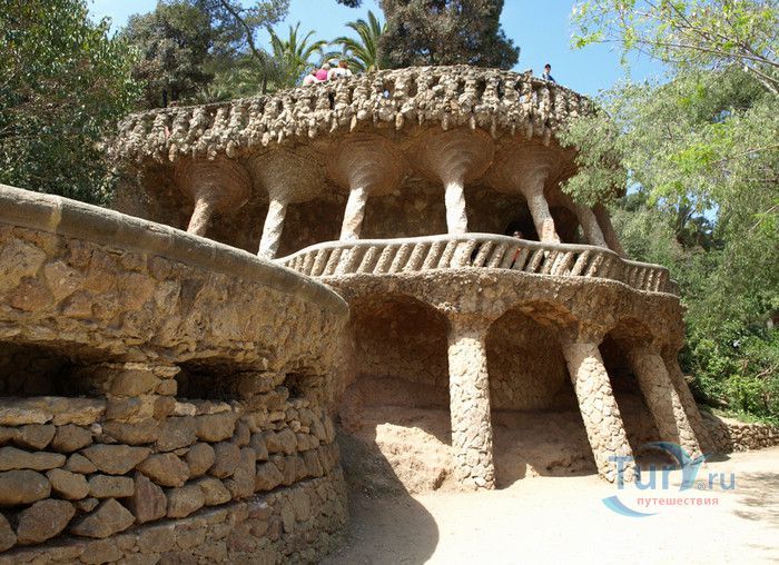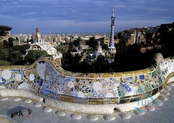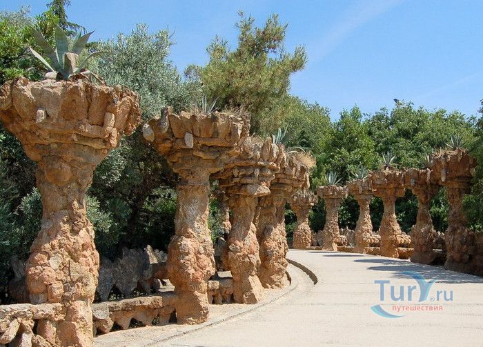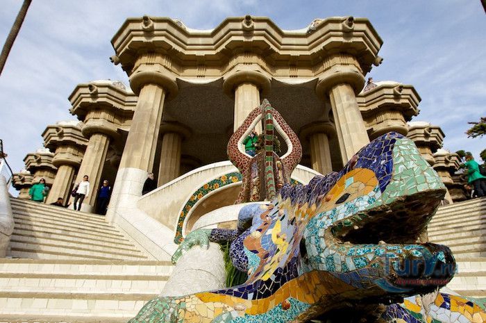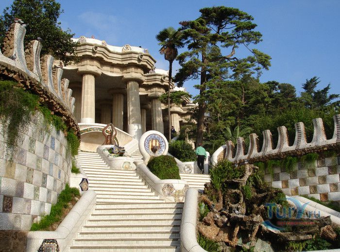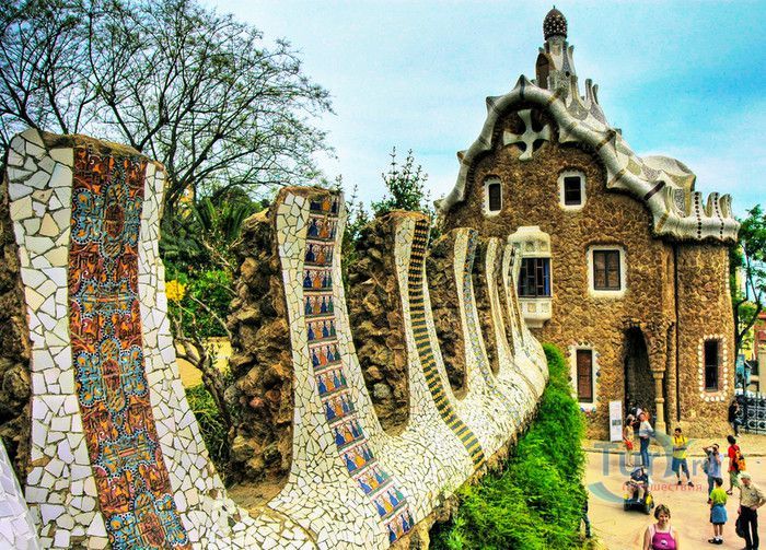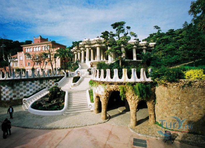 Парк Гуэль, спроектированный по поручению каталонского промышленника Эусеби Гуэля известным архитектором Антонио Гауди, расположен в Барселоне. Предполагалось, что парк украсит участок земли, который был приобретен под застройку частными особняками. Работы по созданию парка Гуэль поручает своему другу Антонио Гауди, который планирует и руководит проектом с 1900 по 1914 год. Работы велись в три этапа. Сначала было выполнено укрепление и обустройство склонов холма Лысая гора, на котором находился участок. На втором этапе были проложены подъездные дороги, построены входные павильоны и окружающие территорию стены. В центре парка, как место отдыха и собраний будущих жильцов, был возведён крытый рынок с центральной эспланадой, 86 рифлеными колоннами и плоской крышей, которая представляла собой обширную террасу с видом на город. Для демонстрации будущим покупателям был построен образец жилого дома. На последнем этапе строительства была сооружена знаменитая извилистая скамейка. У центрального входа были построены два совершенно сказочных домика, один из которых предназначался для администрации парка, второй - для привратника. Парадная лестница с фонтанами ведёт в "Зал ста колонн". На нижней площадке лестницы Гауди поместил своего любимого персонажа - мозаичную саламандру, которую посетители обязательно похлопывают по голове. Средняя площадка украшена медальоном с четырёхполосным каталонским флагом и головой змеи. На верхней террасе, являющейся центром всего паркового ансамбля, находится длинная скамья, изогнутая в форме морского змея. Её сиденья совпадают с очертаниями тела сидящего человека. Чтобы добиться этого эффекта Гуди усадил рабочего на не просохшую штукатурку и, таким образом, замерял изгиб спины. Уникальная мозаика, которой украшены многие сооружения парка, создана Жузепом Марией Жужолем - учеником Антонио Гауди. От центральной площади парка в разные уголки проложены пешеходные дорожки и тропинки. К сожалению, проект оказался нерентабельным - были проданы только два участка. Один из двух построенных домов в 1906 году приобретает сам Гауди, в котором он и прожил до 1925 года. В доме же, который был построен как образец для покупателей, поселился Гуэль. После его смерти в 1918 году, наследники предложили Городскому совету Барселоны выкупить парк. Решение о покупке было принято, и в 1926 году Парк Гуэль становится городским парком. В доме Гауди в 1963 году открыт его музей. В 1969 году парк был объявлен художественным памятником, а в 1984 году внесен в список Всемирного наследия ЮНЕСКО. Парк Гуэль является одним из самых необычных парков мира и одной из самых посещаемых достопримечательностей Барселоны.