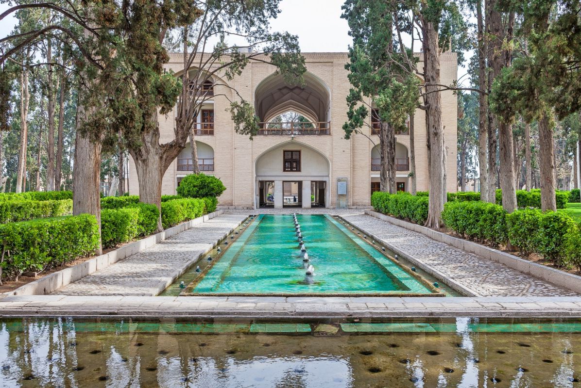 В центре сада расположен дворец Сефевидов. Малое здание бани и другие постройки, принадлежащие также времени правления династии Сефевидов, расположены по тому же принципу. А дворец Каджаров с красивыми картинами на потолке и стенах расположен уже за пределами оси симметрии.