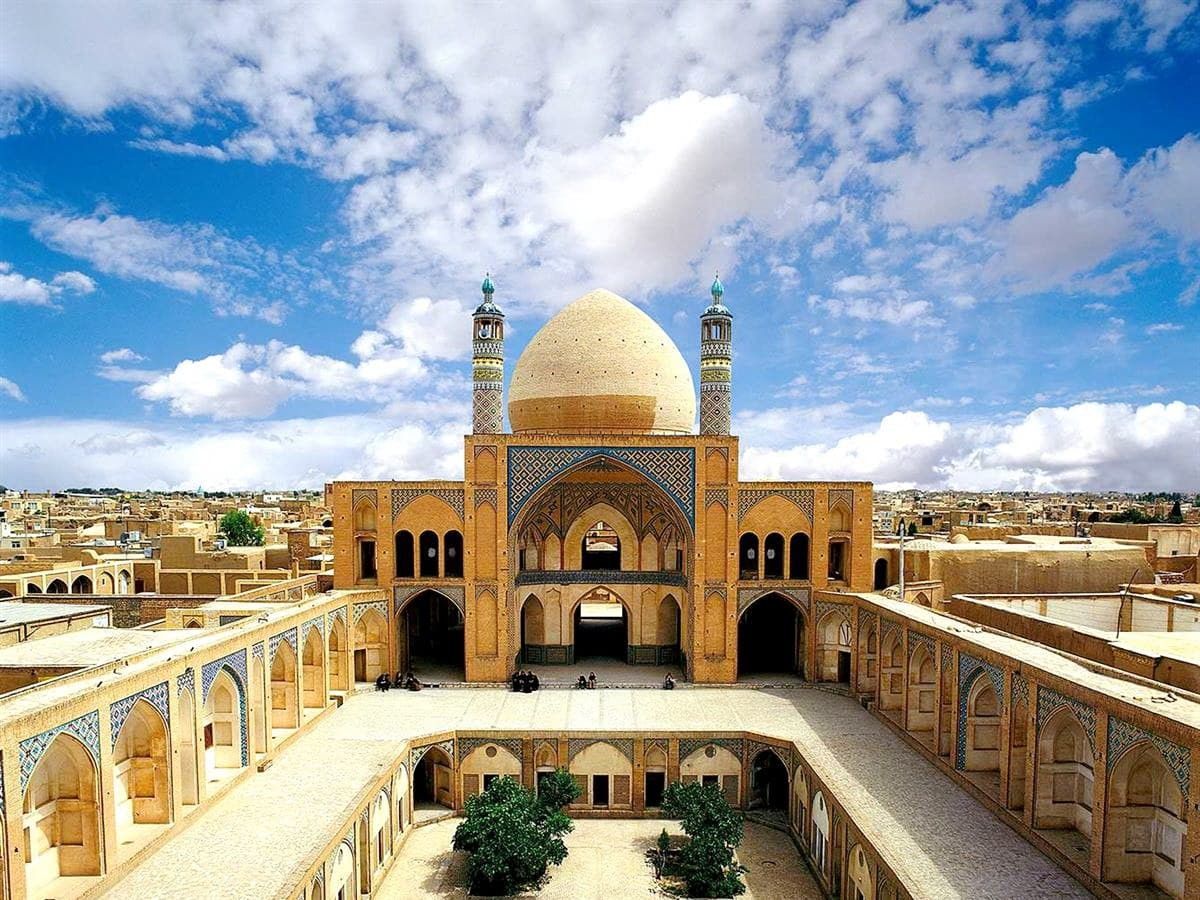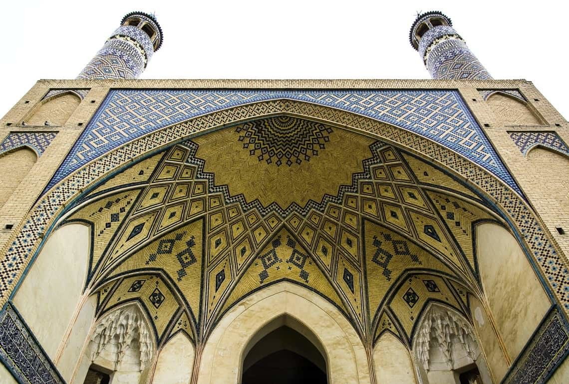 Мечеть Ага Бозорга является единственным пятиэтажным зданием исламского мира, а материал, из которого она состоит, был сделан с применением земли, вырытой на месте ее строительства. По бокам входной двери этой мечети были спроектированы две платформы.