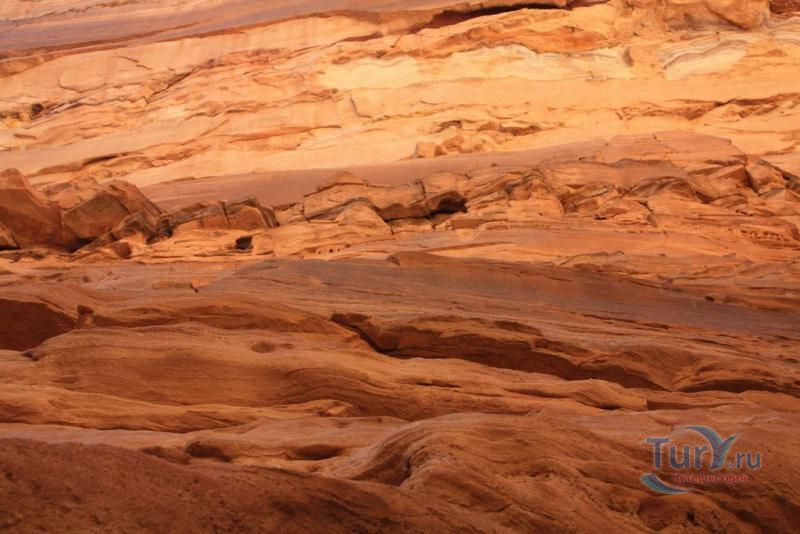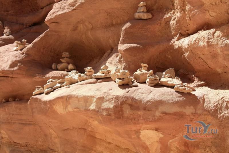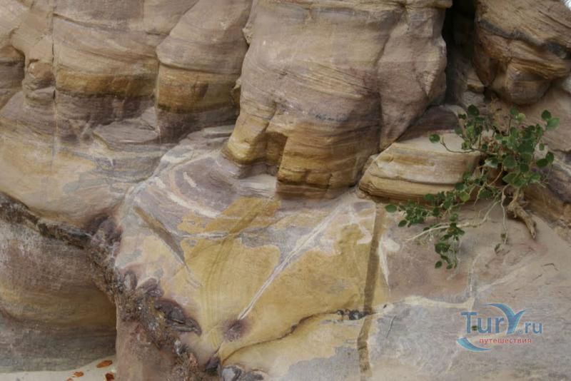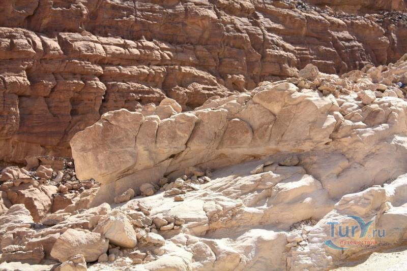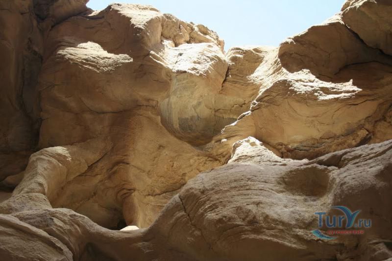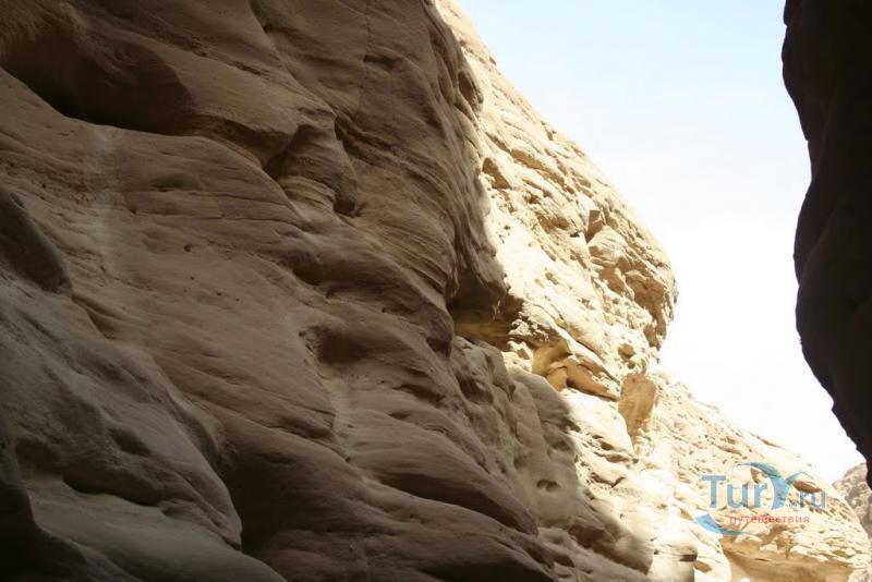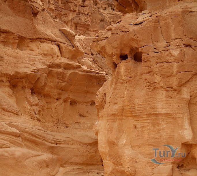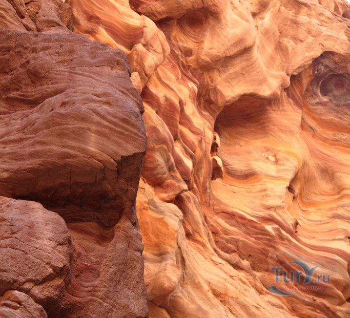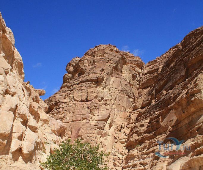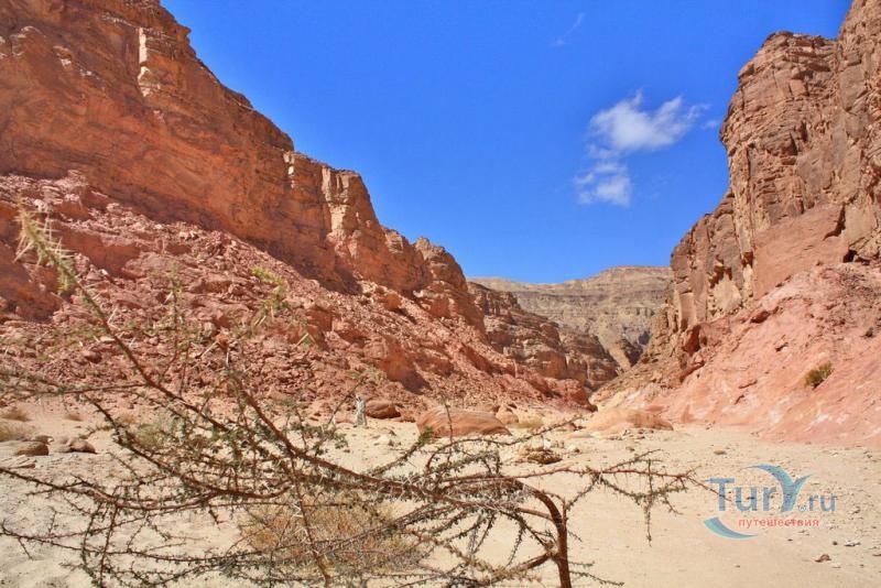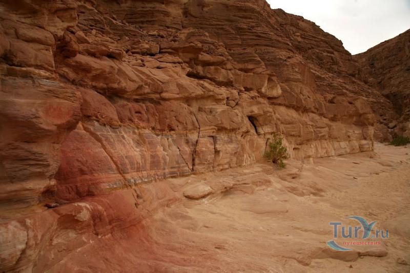 Цветной Каньон - очень необычное, интересное и увлекательное место, которое находится на Синайском полуострове. Его название говорит само за себя. Благодаря примесям оксида железа и марганца скалы каньона имеют самую живую раскраску: белую, желтую, розовую, зеленую, оранжевую, бордовую, красную, фиолетовую. Окраска скал в некоторых местах очень яркая с призматическим металлическим блеском; в других местах цвет камня очень мягкий и нежный. Сложно поверить, что миллионы лет назад на этом участке Синайских гор было море. Природная катастрофа внесла свои коррективы, огромное землетрясение подняло морское дно, соорудив таким образом одно из самых красивейших мест на Земле. В течение нескольких столетий вода, солнце и ветер вытачивали в красном песчанике углубления. Дно бывшего моря обрело вид замысловатого лабиринта, и человеческому взору предстал огромнейший каньон из красного складчатого песка. Во время дождей (дожди бывают в среднем 4 раза в год) каньон, обычно пересыхающий в течение года, затопляется водой. После сильных дождей 2002 года некоторые скалы в ущелье сместились и стали неустойчивы. Свой след оставили в ущелье и пустынные ветры, вырезав в цветных скалах самые затейливые узоры. В некоторых местах Цветного каньона можно увидеть особенно примечательные сюжеты, с которыми связано немало историй и легенд. Это отпечатки кораллов, след динозавра, приносящие удачу «глаза» каньона и «трон» Клеопатры. Рисунки на скалах будоражат воображение – здесь можно найти человеческие лица, сказочных животных и птиц, лики божества или еще что-то, что подскажет ваша фантазия. В каньоне можно встретить удивительное растение - уникальное вьющееся дерево, которое обладает целительной силой. Оно умеют влиять на самочувствие людей положительными флюидами. Цветной каньон не только восхитителен и необычен, он еще и тяжел в покорении: тесные щели, через которые нелегко пролезть, невыносимо палящее солнце, спутанные лабиринты путей. Всё это - проверка силы духа. Протяженность этого самородного ущелья - 5 километров. Высота скал 20-80 метров, проход между ними 1-10 метров. Любой изгиб Цветного каньона готовит путешественнику сюрприз.
