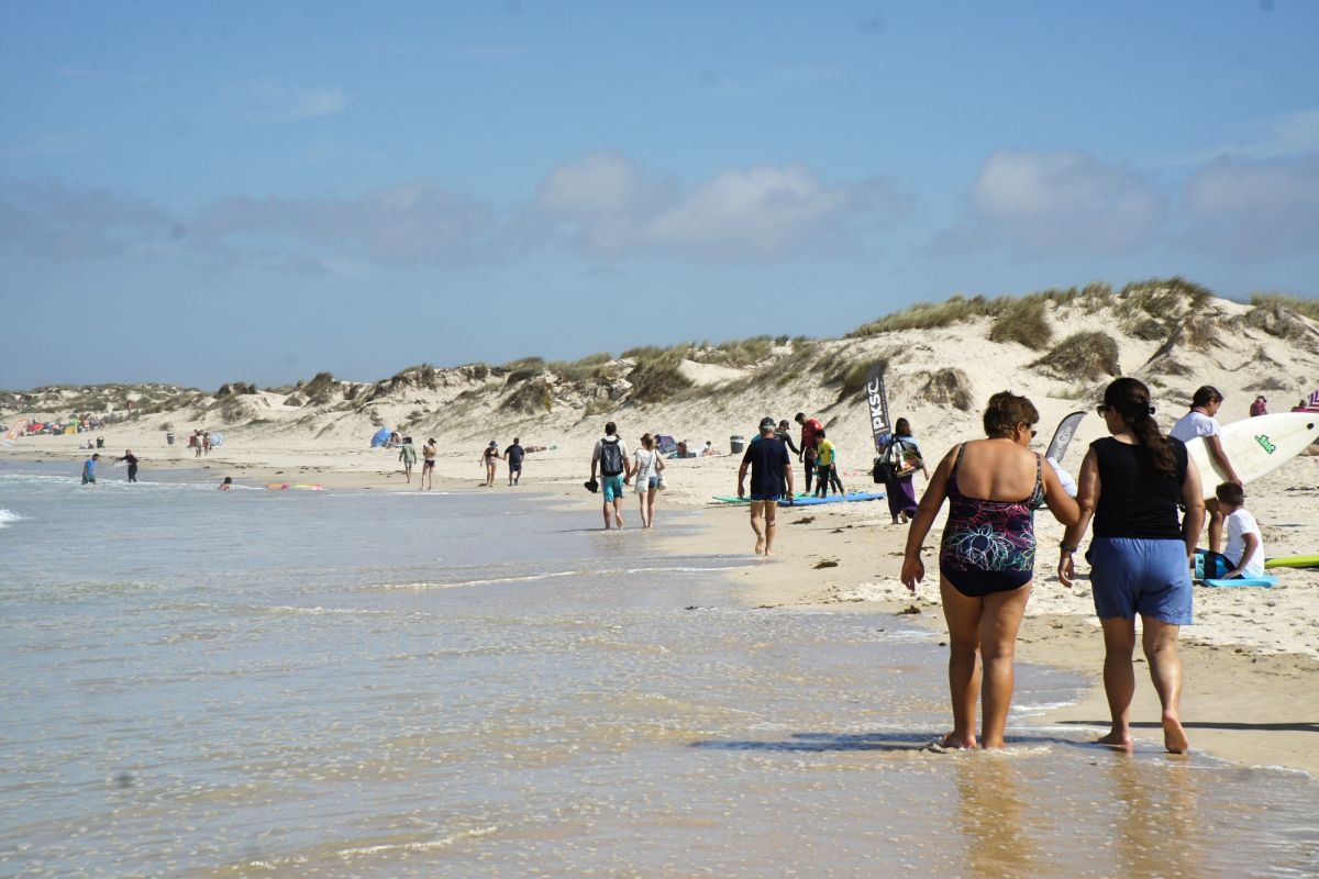 Пляж просторный, отделенный от дороги вереницей песчаных дюн, которые еще больше украшают и без того прекрасный пейзаж.
