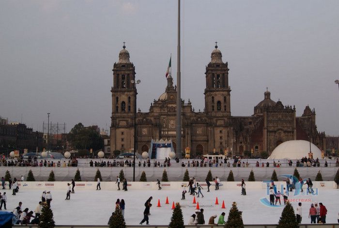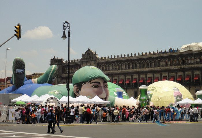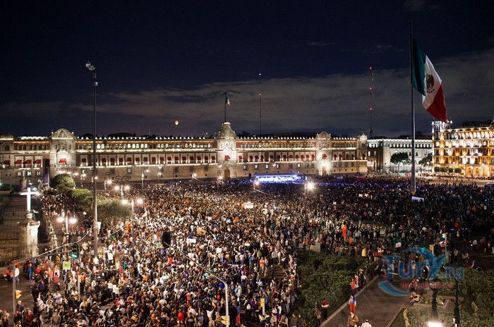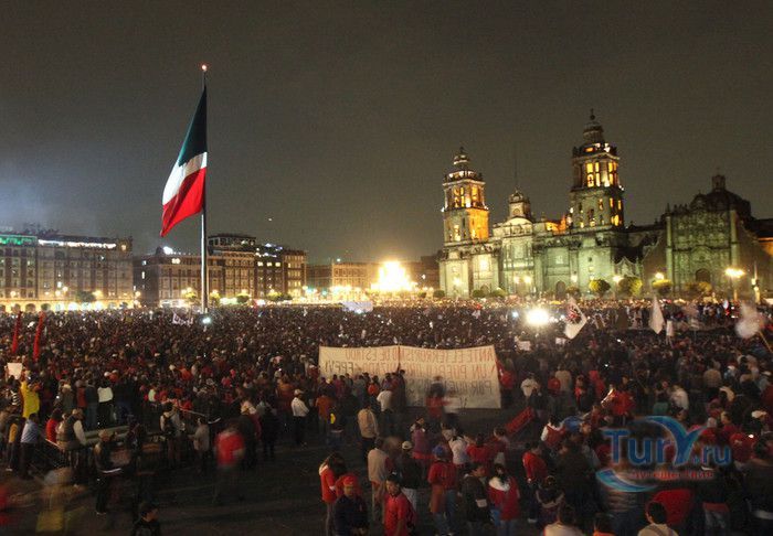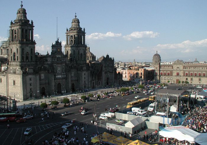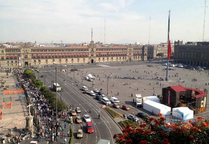 Площадь Конституции имеет неофициальное название - Площадь Сокало, что в переводе с испанского означает плинтус. Площадь, ещё до завоевания испанцами Мексики, была главным церемониальным местом города ацтеков Теночтитлан. После падения Теночтитлана испанцы оказались в разрушенном до основания городе. Перестройка его происходила в европейском стиле, который предполагал прямые узкие улицы и кварталы прямоугольной формы. По приказу наместника Новой Испании Эрнана Кортеса центральная площадь была восстановлена к 1524 году, для её строительства использовались камни из разрушенного святилища ацтеков Теокалли. На площади были возведены собор и дворец вице-короля. На ней устраивались корриды, функционировал рынок, проводилась церемония принятия присяги вице-королей, проходили военные парады и религиозные празднования. В последующие годы площадь и здания, расположенные на ней, неоднократно перестраивались. Сама площадь несколько раз сменяла названия: Пласа Майор, Пласа-де-Армас и Пласа-дель-Паласио. После обретения Мексикой независимости главная площадь столицы стала называться Пласа де ла Конститусьон. На ней планировалось установить монумент Независимости, однако планы не осуществились. Был построен только постамент (сокало), который простоял на площади много лет, дав ей неофициальное название площадь Сокало. В настоящее время главная площадь - исторический центр Мехико занимает целый городской квартал и является одной из самых больших площадей в мире. На ней расположены главные достопримечательности столицы - Национальный дворец и Кафедральный собор. На площади проводятся военные парады, гражданские и культурные мероприятия, проходят концерты и выставки. Ежегодно 15 сентября, в канун провозглашения независимости Мексики, с центрального балкона Национального дворца перед народом, собравшимся на площади, выступает президент страны с торжественной речью.