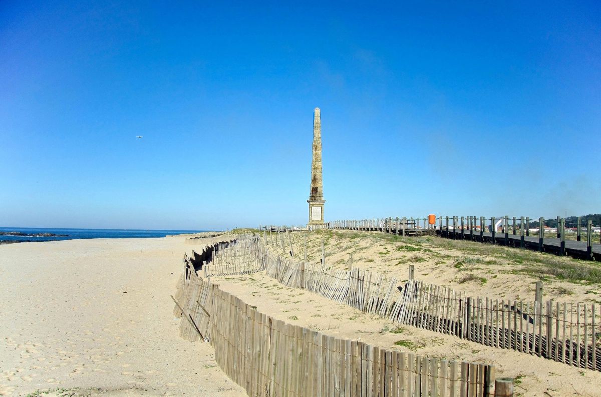 Раньше пляж «Прайя-да-Мемория» назывался «Прайя-да-Ареноза или душ-Ладронеш» (Praia da Arenosa ou dos Ladrões). Название изменили в связи с возведением обелиска в том месте, где в 1832 году высадились войска под командованием дона Педру IV (первого императора Бразилии), чтобы свергнуть с португальского трона свего брата, короля дона Мигела.