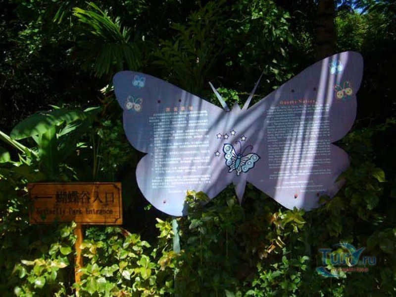 Музей-Заповедник Долина Бабочек Санья расположен в Китае, на острове Хайнань, в 30 километрах от города Санья, на побережье залива Ялонг. Долина Бабочек была открыта для посетителей в 1997 году и является первым Парком бабочек Китая, в котором наряду с научной и образовательной деятельностью, большое внимание уделено развитию туризма. Парк занимает территорию площадью 1,5 гектара, он расположен в живописном ущелье, окружённом с трёх сторон горами. В тропическом муссонном лесу заповедника произрастают около 360 видов растений - драконово дерево, энтада фасолевидная, альбиция (шёлковое дерево), кирказоновые лианы, камфорное дерево, восточно-индийское железное дерево, клаусена, баньян, олеандр и многие другие. По территории Долины бабочек протекает горный ручей, обеспечивающий достаточную влажность, что в сочетании с тёплым климатом, защищённостью ущелья от ветров и наличием растений, обеспечивающих цикл развития бабочек, создаёт уникальный микроклимат для жизни этих красивых насекомых. Долина Бабочек состоит из нескольких тематических зон. В саду бабочек площадью 1682 квадратных метра, огороженном сеткой, обитают около 40000 декоративных бабочек, ежедневно здесь выпускают около 6000 бабочек, чтобы посетители могли полюбоваться на них. Коллекция Музея бабочек насчитывает около 2000 редких видов бабочек и других насекомых со всего мира, среди которых Китайский парусник, Золотой Кайзер или Тейнопальпус золотистый (эндемик Китая, стоимость одного экземпляра этого насекомого достигает нескольких десятков тысяч американских долларов), Бутанитис тайдина, махаоны, бронзовки, аполлоны и другие. В зоне для разведения бабочек создана благоприятная среда для их размножения - здесь поддерживаются необходимые температура и влажность, высажены медоносные растения, благодаря чему жизненный цикл насекомых проходит в несколько раз активнее по сравнению с обычными условиями их обитания. В Долине Бабочек есть также студия прикладного искусства, в которой представлены украшения из крыльев бабочек (естественно, умерших своей смертью), а также сувенирный магазин. Увидеть многообразие бабочек, собранных в Долине Бабочек, приезжают туристы с разных концов планеты.