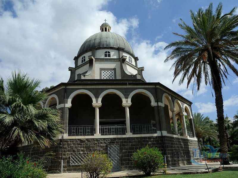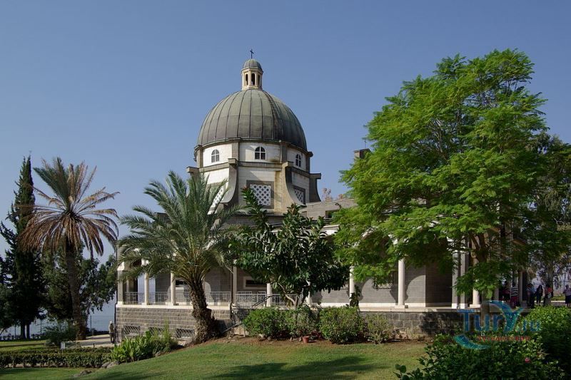 Гора Блаженств - это гора, возвышающаяся на 125 метров над юго-западным берегом Галилейского моря. Здесь Иисус произнес знаменитую Нагорную проповедь. Каждая часть проповеди начинается со слова "Блаженны" - отсюда и название горы - "Гора Блаженств". Здесь же Исус избрал 12 апостолов. Место почитается христианами еще с византийских времен и тогда на склоне горы стояла церковь. Современный храм был построен в 1937 году на вершине горы по проекту итальянского архитектора Берлуччи. Здесь был разбит чудесный сад вокруг храма, и сегодня, этот воистину райский уголок, пробуждает у всех посетителей чувства умиротворения и блаженства.