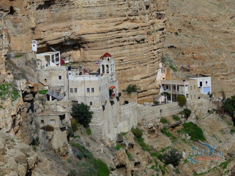 Монастырь Сент-Джордж, также его называют Монастырь Святого Георгия Хозевита, расположен на узком уступе, выступающем в отвесной скале ущелья Вади Кельт (Кельтский каньон). Рядом, в скалах, есть очень много пещер-келий отшельников, которые теперь заброшены. Монастырь функционирует и открыт для посетителей. Он был основан в 80-е года 5 века. Этот красивый и необычный монастырь находится в 5 км от палестинского города Иерихон. На расстоянии он смотрится очень интересно, похож на игрушечный домик, который прикрепили прямо к стене ущелья. В монастыре находится могила Святого Георгия, который много лет был отшельником и жил здесь, став впоследствии духовным наставником общины монахов. За долгие годы существования, обитель подвергалась разрушениям со стороны воинственно настроенных народов. Позднее её старались возродить, но безуспешно. В 1901 году, при помощи греко-ортодоксальной Патриархии Иерусалима, монастырь Сент-Джордж был полностью отстроен, отреставрированы церкви и кельи монахов. В 1952 году к этому комплексу, при содействии Иерусалимского Патриарха Тимофея І, была пристроена колокольня. Монастырь имеет трехуровневую схему строения. На нижнем уровне расположены захоронения и подсобные помещения-склады. На среднем уровне - все главные строения и вход в монастырь, а также церкви Святых Иоанна и Георгия Хозевита, церковь Святой Девы Марии. На верхнем уровне находится церковь-пещера Илии. Монастырь открыт для паломников и посетителей.