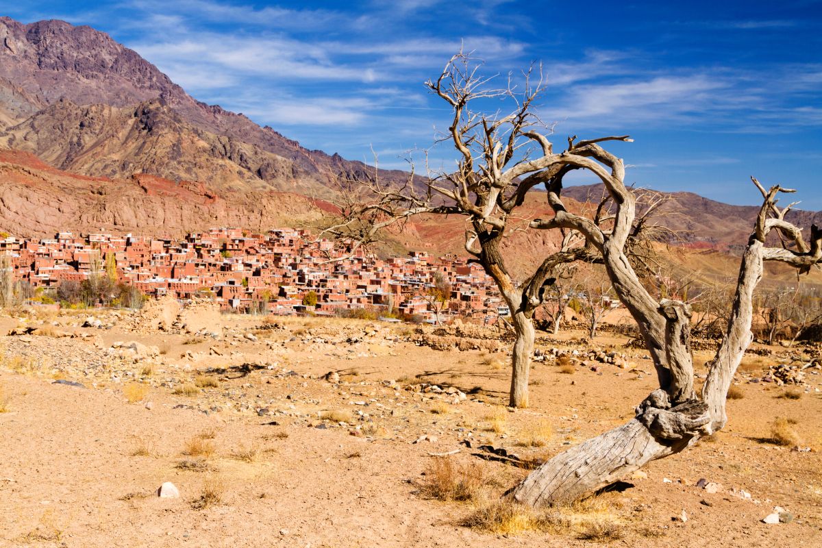Деревня Абяне - одна из самых специфических деревень Ирана с живописным видом и прекрасным климатом, где все дома были построены на склоне холма на севере реки Барзруд с красивой и приятной архитектурой. По форме деревенские дома - лимасовые, глинобитные, кирпичные и каменные, относящиеся к эпохам Сасанидов, Сельджуков, Сефевидов и Каджаров, и в этой деревне нет ни одного тупикового переулка. Старые дома села построены на склоне холма с покрытием из красной земли, которое хорошо защищает от дождя.