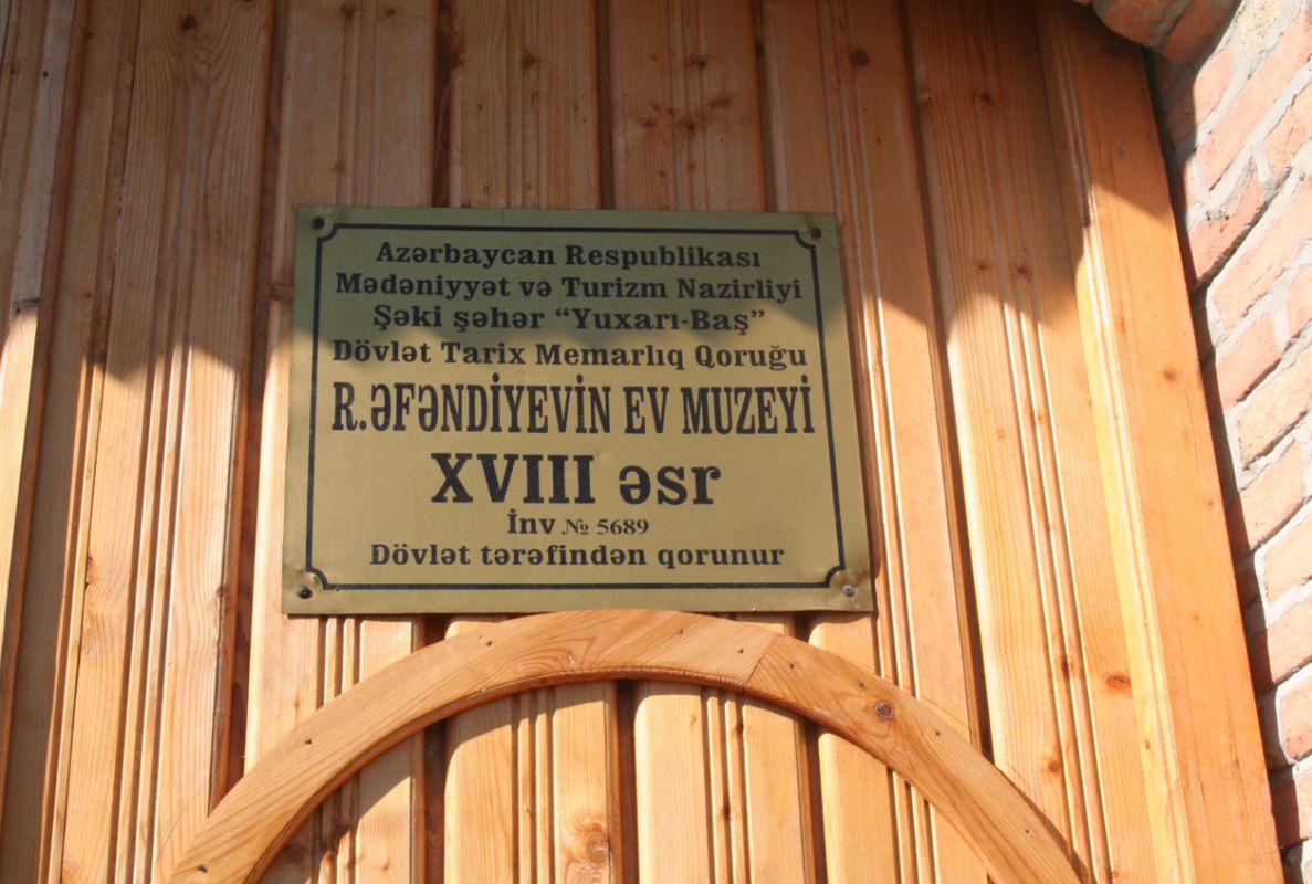 Здание, где размещен музей, было построено в конце XVIII - начале XIX веков с использованием речного камня и кирпича. Здание музея двухэтажное. Нижний этаж состоит из двух комнат и подвала, а верхний этаж - из трех комнат, одного маленького коридора и отделов. В музее есть 2281 экспонат. Он состоит из четырех отделов. В первом отделе находится бюст Рашид-бек Эфендиева и экспонаты, отражающие его деятельность. Экспонатами этого отдела являются первая пьеса литератора "Пламя крови" (1979 год), написанная им в годы учебы в Горийской семинарии по совету его учителя А. О. Черняевского, а также учебники "Детский сад", "Бесиратул-афтал", произведения "Щедрость бороды", "Если бы сосед был соседом, слепая девушка вышла бы замуж", "Роза", "Зубная боль", "Город Тифлис", "Любитель денег" и др. В этом отделе сохраняются и переведенные Р.Эфендиевым повесть "Рустам и Сохраб" из произведения Фирдовси "Шахнаме" и книга Прудона "Психология".