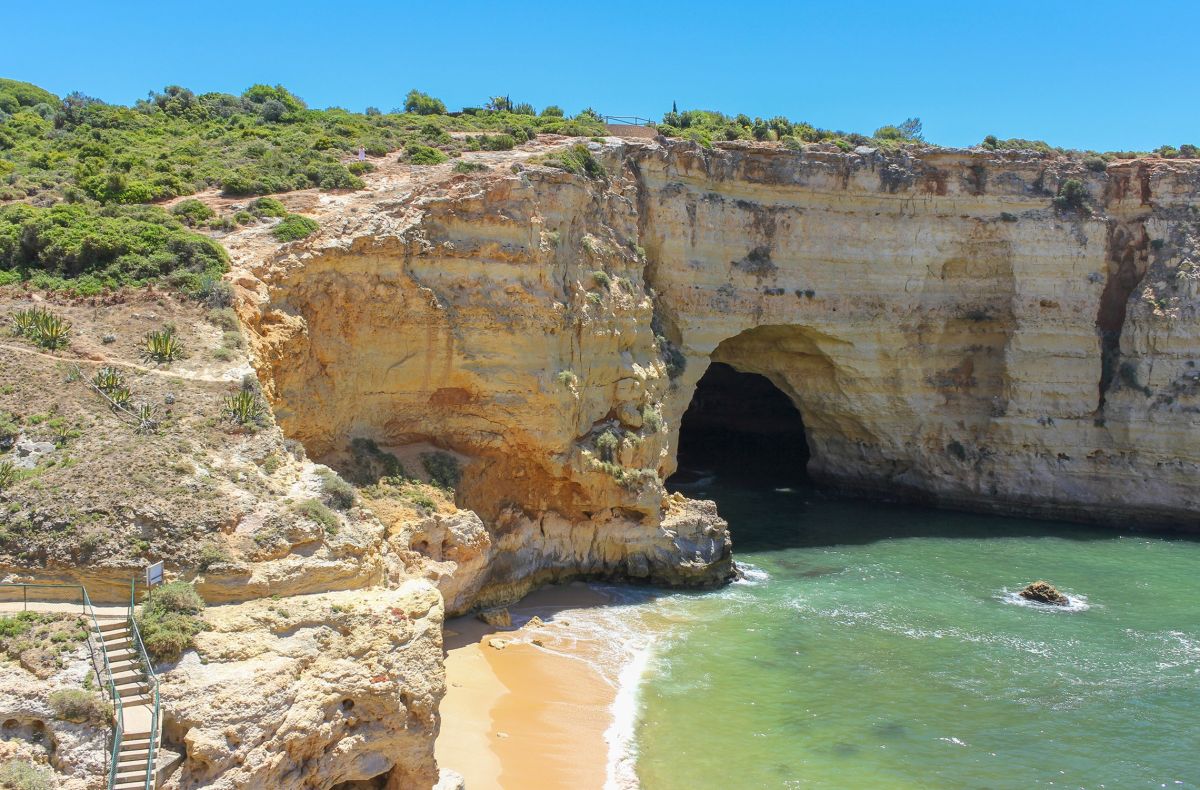 Красивый маленький пляж «Прайя-ди-Вале-Кову» притулился у высокого скалистого берега, на котором находится отель «Тиволи Алмансор» (Hotel Tivoli Almansor).