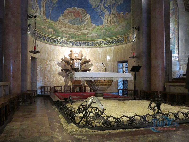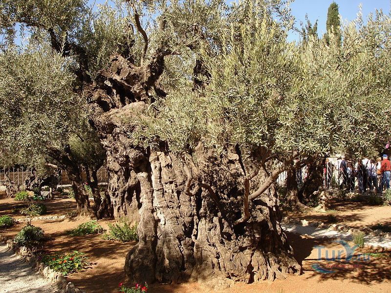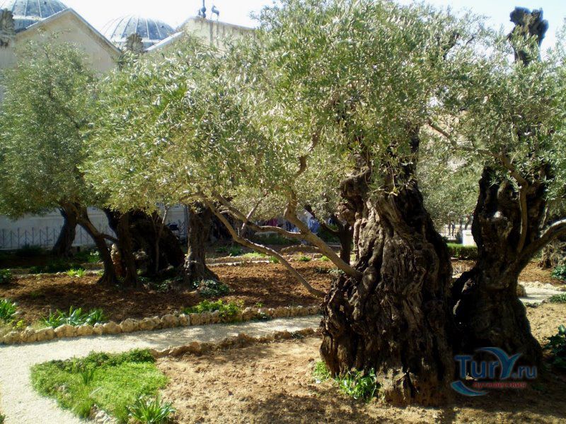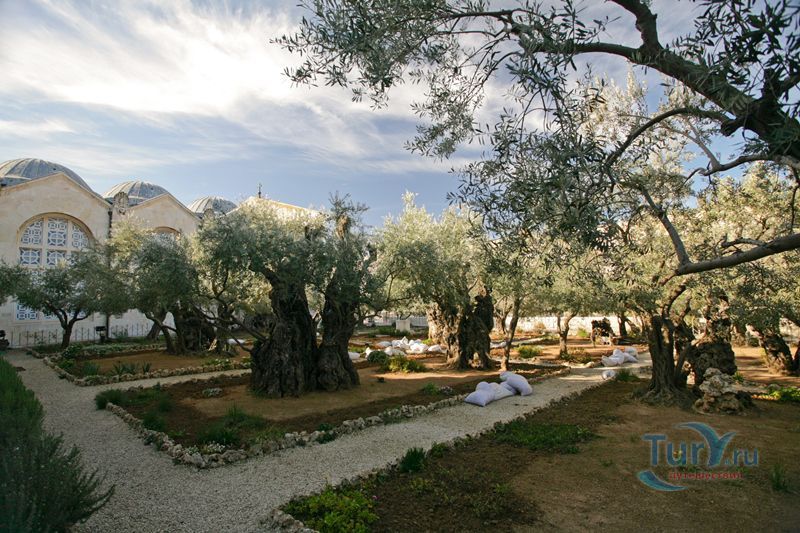 На западном склоне Масличной горы раскинулся Гефсиманский сад. До наших дней сохранилась лишь часть сада библейских времен, однако до сих пор цветут восемь олив, посаженных еще в I веке н.э. Сюда пришел Иисус в ночь перед распятием, здесь он пережил горечь предательства и был арестован. В месте, где, по преданиям, Иуда предал Христа, еще в V веке была построена базилика. В 1919-1924 гг. была сооружена современная церковь Всех наций. Внутри церкви на потолке 12 куполов и гербы 12 стран, пожертвовавших деньги на её строительство. На стенах мозаикой выложены картины, отражающие «Гефсиманское моление», «Предание Спасителя» и «Взятие Христа под стражу». На полу перед алтарем – терновый венец, опоясывающий скалу, на которой молился Иисус. Синие витражи создают внутри церкви полумрак, что символизирует последнюю земную ночь Иисуса.