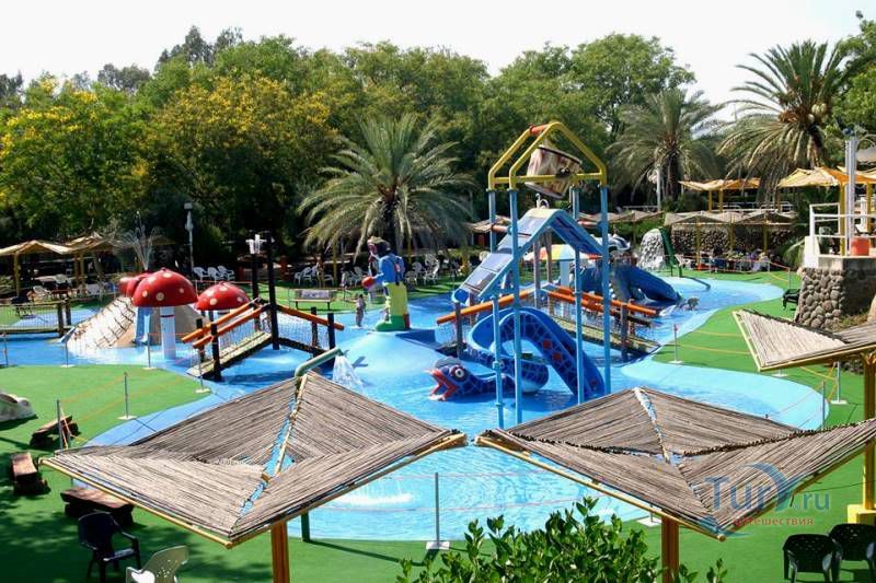 Популярный в Израиле парк водных аттракционов: водные горки для детей и взрослых, бассейны, спуск на надувных камерах и т.д. Шезлонги и топчаны в тени, зелёные лужайки. Здесь Вы можете расслабиться в мягкой тени и, потягивая прохладительные напитки, наблюдать, как ваши дети бегают по небольшим мостикам над миниатюрными каналами или плескаются в воде. Если вы захотите, то можете составить им компанию и покататься вместе с ними с небольших горок «Осьминога» и «Слона». Для любителей лёгкого адреналина и динамики - крутые водные горки с длинным прямым или закрученным спусками.