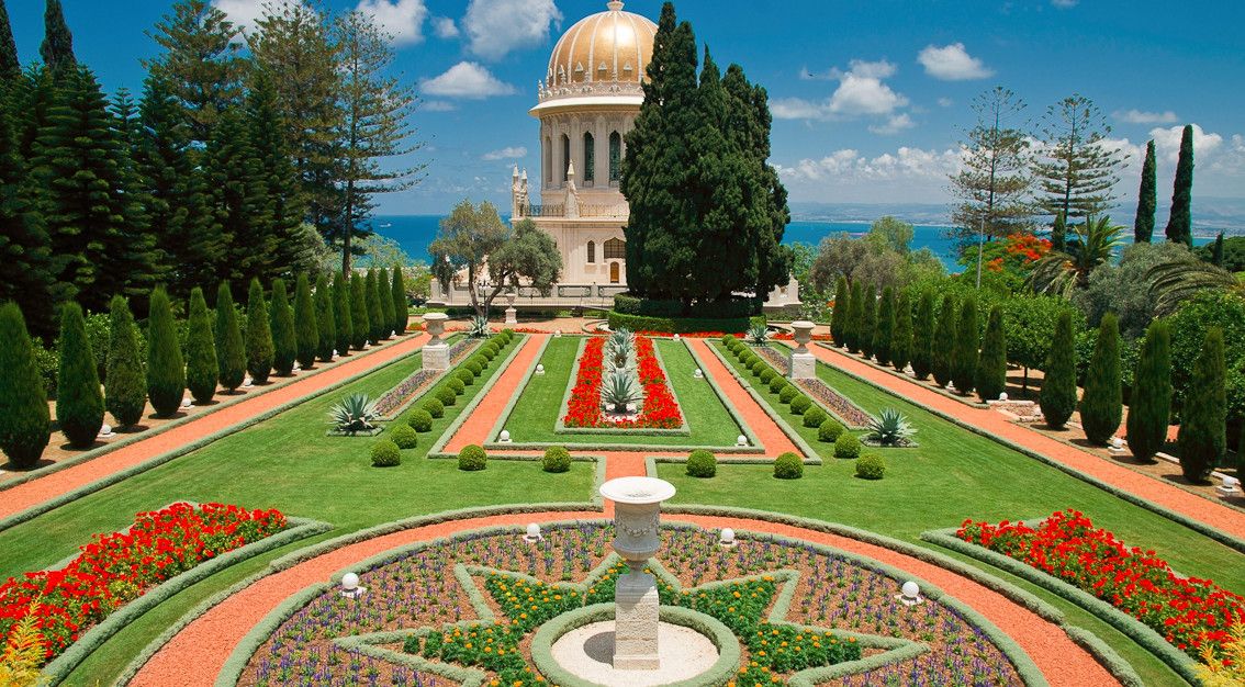 Бахайские Сады в Хайфе являются одной из самых популярных достопримечательностей на Ближнем Востоке, которую ежегодно посещают более полумиллиона посетителей. Величественные Бахайские сады расположены в центре Хайфы, на северном склоне горы Кармель и напоминают библейские висячие сады. Многоступенчатые сады разделены на 19 террас, каскадом спускающихся к побережью Хайфского залива. С террас открывается панорамный вид на город, на горы Галилея и Средиземное море. На верхней центральной террасе расположено златоглавое сооружение - Бахайский храм - усыпальница Баба, первого пророка совсем молодой религии бахаи. Внутрь здания можно зайти во время открытия Бахайских садов, но внутри нет ничего особого - пустое пространство, букеты роз, тексты молитв на стенах на персидском языке. По традиции каждый их бахаев должен хоть раз совершить паломничество к этой святыне и осилить все 1400 ступеней сада. Все экскурсии для посетителей проводятся с верхней террасы к нижней, а подъем снизу вверх доступен только для последователей Бахаи. Открытие садов состоялось в 2001 году. В июле 2008 года Бахайские сады в Хайфе были внесены в Список всемирного наследия ЮНЕСКО. Бахайские сады или Всемирный центр Бахаи является одним из самых красивых и посещаемых мест в Хайфе и в Израиле.
