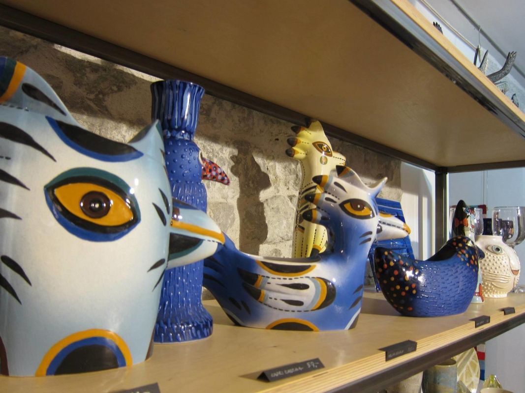 На постоянно обновляющейся выставке представлены образцы современного текстиля, картины с росписью по шелку и плетеные ковры, керамика, скульптуры, бокалы, украшения, кожаные изделия и почтовые открытки. В ассортименте имеются как небольшие предметы, так и крупные текстильные изделия и вазы.
