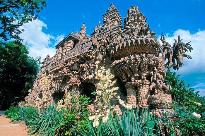 Идеальный дворец почтальона Шеваля - воплощение мечты обычного французского почтальона Фердинанда Шеваля о сказочном замке, который он построил из камней необычной формы, собранных на дорогах и околицах. Сбор камней и строительство длилось 33 года - с 1879 по 1912 годы. На момент окончания строительства автору исполнилось 76 лет. Дворец, созданный из проволоки, цемента и камней, соединил в себе архитектуру самых разных стилей - индуистских храмов, арабских мечетей, средневековых замков и христианских соборов. Идеальный дворец окружен фонтанами, скульптурами мифических животных и сказочных персонажей, внутри есть мечеть и храм. В 1969 году Идеальный дворец официально признан историческим памятником Франции, а самого Фердинанда Шеваля называют основоположником архитектурного стиля Ар брют. Надпись на фасаде «10000 дней, 93000 часов, 33 года» - своеобразное доказательство, что мечты сбываются, если верить и идти к цели. Туристы со всего мира приезжают посмотреть на чудесный дворец. Ежегодно Идеальный дворец посещают более 100 000 человек.