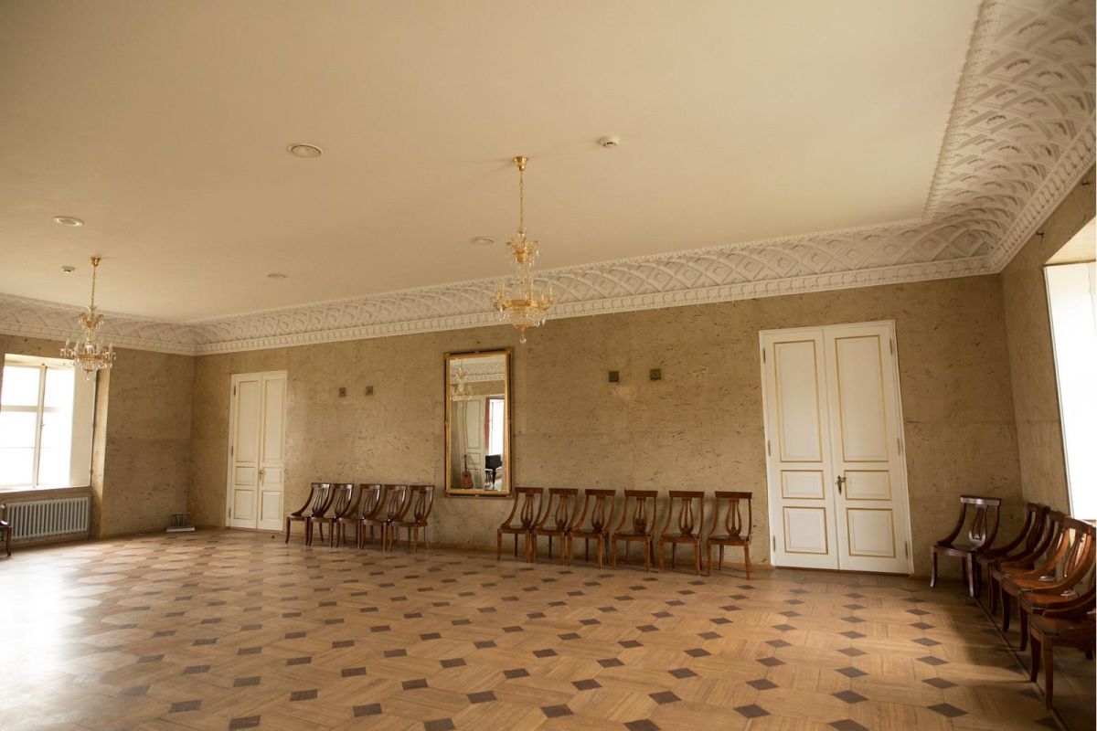 Своеобразное сочетание: открыта для посетителей, и в то же время – усадебная школа! Двухэтажный каменный господский дом в стиле позднего классицизма был построен в 1847 году. Для здания усадьбы характерный большой центральный вестибюль, столовая с картинами на темы Помпеи и бальный зал со стенами из искусственного мрамора. В усадьбе гостям предложат попробовать национальную еду в сопровождении музыки. Также можно принять участие в стилизованных празднествах различных эпох.