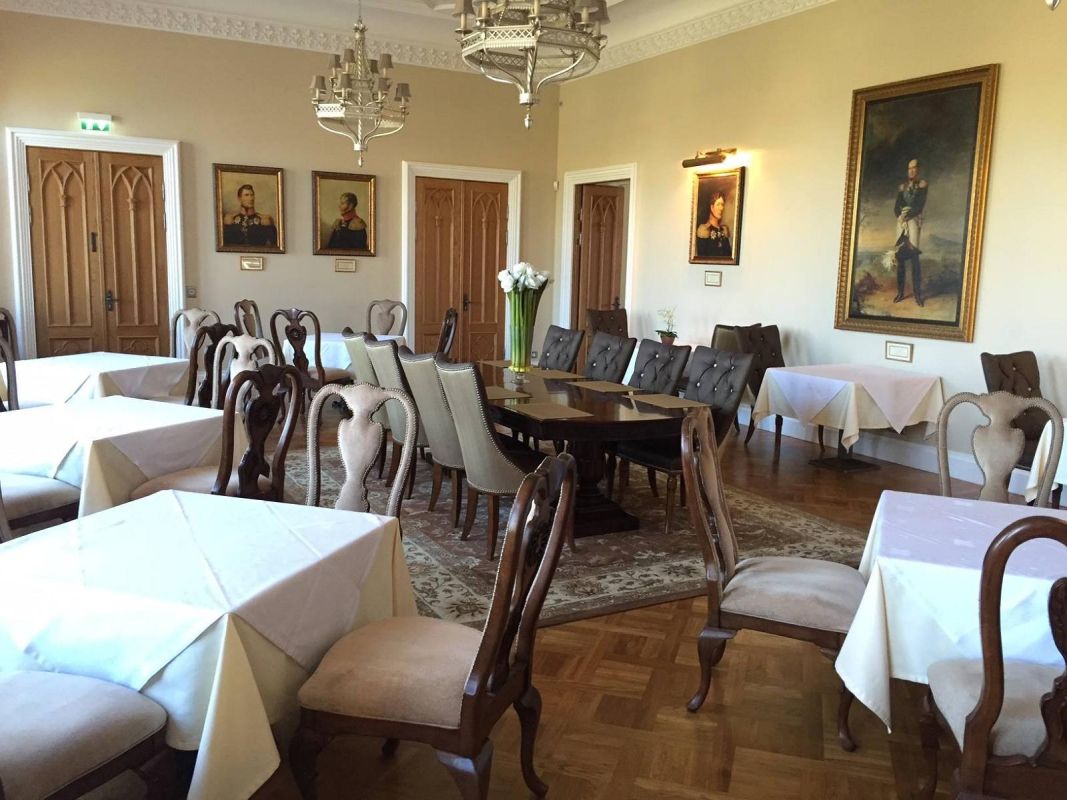 Автором построенного в 1833 году комплекса в неоготическом стиле является Ханс фон Штакеншнейдер, который стал одним из важнейших представителей историцистского стиля в России.