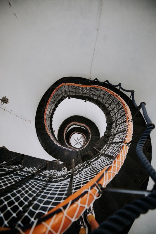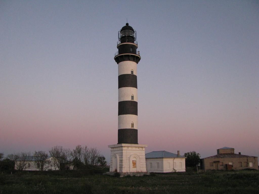 На скалистом берегу на северо-западной возвышенности острова стоит полосатый железобетонный маяк, который был построен в 1954 году и наверх которого можно подниматься с 2019 года.
