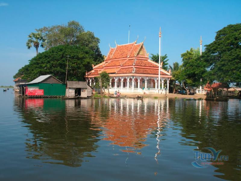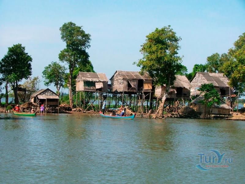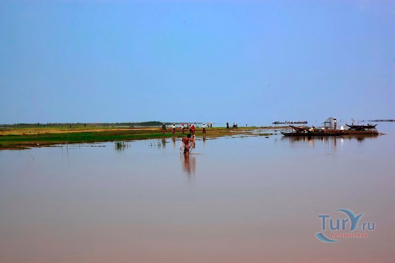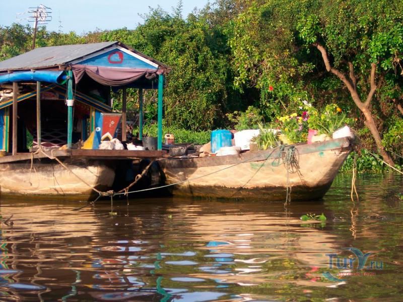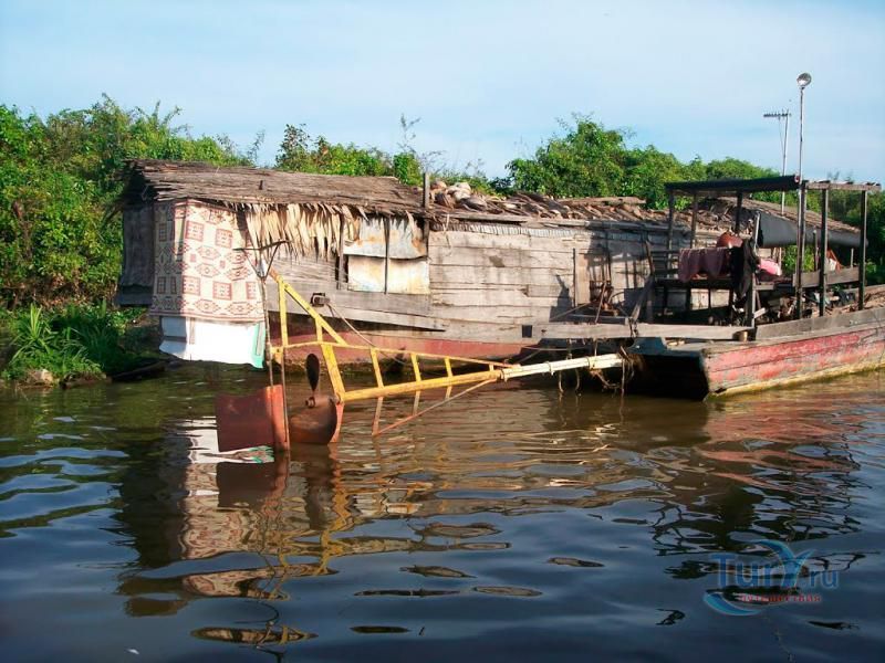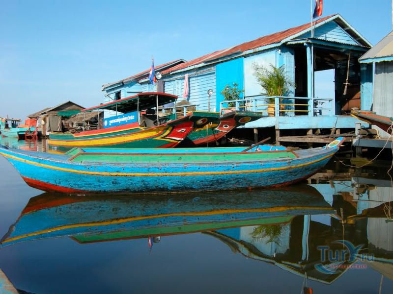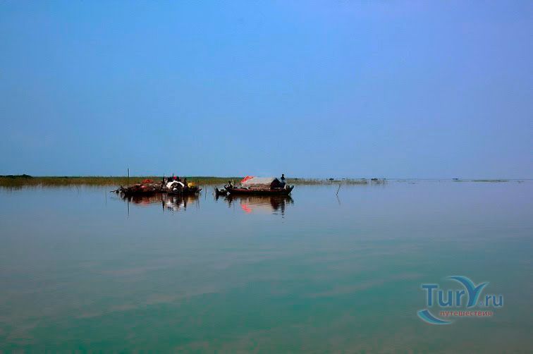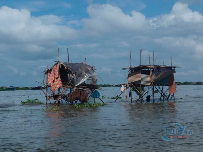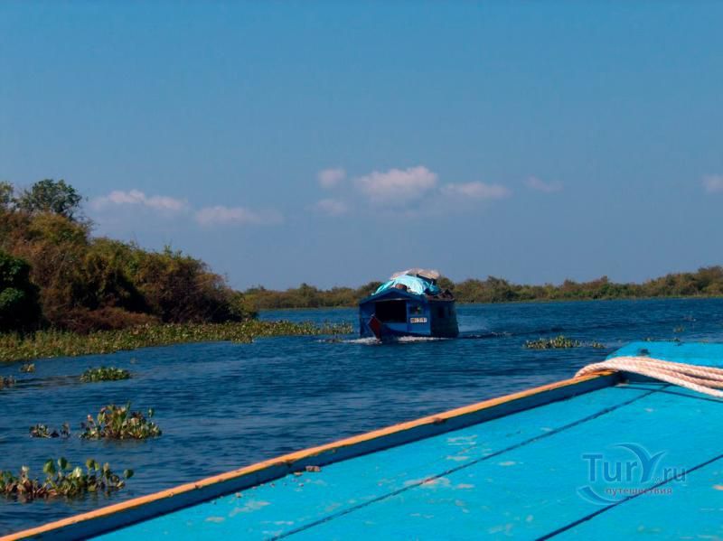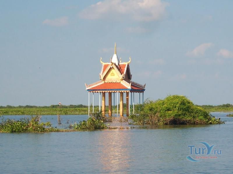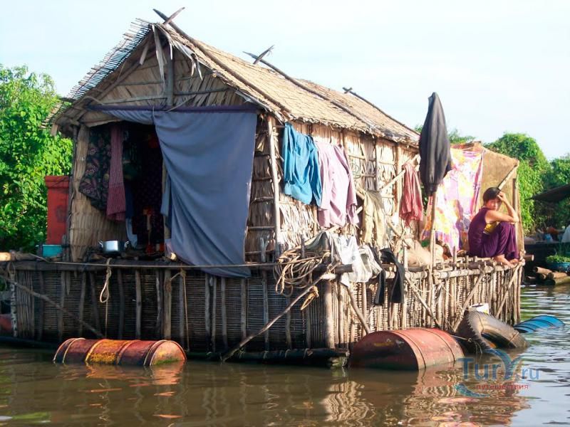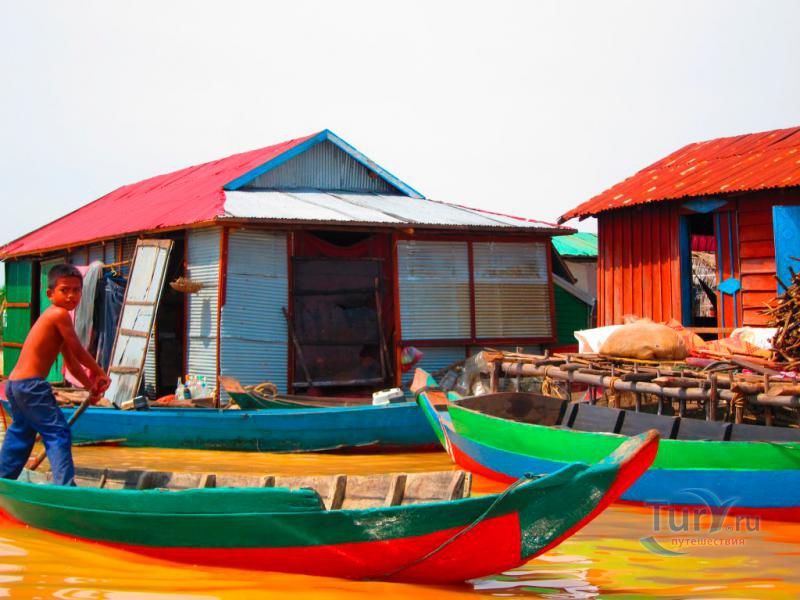 Тонлесап - самый большой водоём Индокитайского полуострова, называемый также «Камбоджийским внутренним морем». Название озера переводится как «большая свежая вода». В западных источниках озеро Тонлесап часто фигурирует как «Большое озеро». Площадь озера 16 тыс. кв. км (для сравнения, площадь Московской области 47 тыс. кв. км). Максимальная глубина озера - 9 метров. Но эти цифры справедливы лишь для сезона дождей, когда озеро наполняется водой и по сравнению с сухим сезоном увеличивается по площади почти в шесть раз. На протяжении большей части года озеро сравнительно невелико (около 2700 кв. км), а глубина озера в это время редко где превышает 1 метр. Таким изменчивым характером озеро обязано вытекающей из него одноименной реке, которая в сезон дождей меняет направление течения и поворачивает вспять, наполняя его водой и затопляя окрестные поля и леса. Благодаря этому создаются хорошие условия для рыбы и для рыбной ловли. Озеро Тонлесап - один из наиболее продуктивных пресноводных ресурсов для добычи рыбы в мире. Кроме того, благодаря тому, что после схода воды на окрестных землях оседает плодородный ил и благодаря постоянно меняющемуся уровню воды, люди могут выращивать рис на плодородной после снижения уровня воды почве в сухой сезон, добывать моллюсков и ловить рыбу круглый год. На озере есть единственное каменное здание, которое стоит на высоких сваях — это буддийский храм. Все же остальные строения плавучие и мигрируют в течение года по озеру. Местные жители, по сути, всю свою жизнь проводят на воде. Чтобы поспевать за периодически передвигающейся береговой линией, они решили не переносить постоянно свои дома, а просто строить их на воде. «Фундаменты» домов в плавучих деревнях представляют собой скопление лодок, плотов и связанных между собой бочек. На них расположены не только жилища, но и небольшие участки земли, где местные жители умудряются выращивать овощи, содержать домашних животных и разводить крокодилов. На таких же плотах построены магазины, школы, храмы, полицейский участок, деревенский клуб, ресторан для туристов и небольшая смотровая площадка. Дети ходят в плавучую школу, путь до которой преодолевают, плавая в больших тазиках. Местные жители не требуют от жизни многого. Их дома от паводка в дождливый сезон защищены благодаря сваям. Отличной вентиляции воздуха в помещении помогает отсутствие дверей. И им совершенно не важно, что в доме нет телевизора, кондиционера и компьютера. Несмотря на такие ужасные условия жизни, жители плавучих деревень неизменно приветливы. Они довольствуются тем, что дает озеро, и не разделяют мужскую и женскую деятельность. Все одинаково добывают пропитание для семьи. Независимо от вида работы, будь то сбор урожая на рисовых плантациях, ловля рыбы, плетение сетей или изготовление сувениров – все трудятся не покладая рук, не обращая никакого внимания на туристов. И пусть вода в озере коричневая от ила и непригодна для питья, зато долины усеяны восхитительными полянами розовых лотосов.