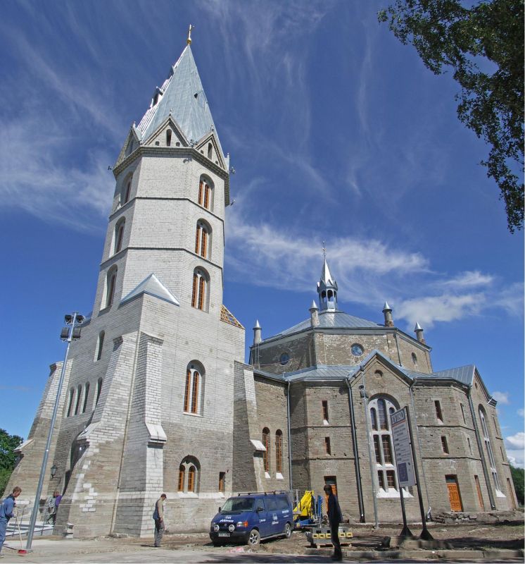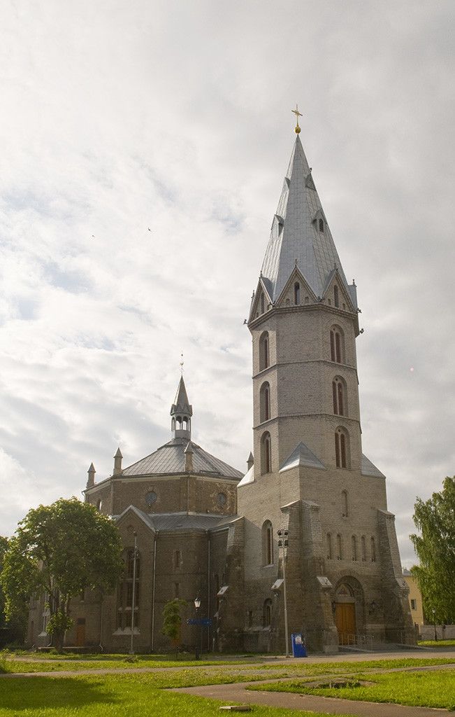 Собор был построен в 1881-1884 гг. для рабочих-лютеран Кренгольмской Мануфактуры по проекту петербургского архитектора Отто Пиуса фон Гиппиуса.