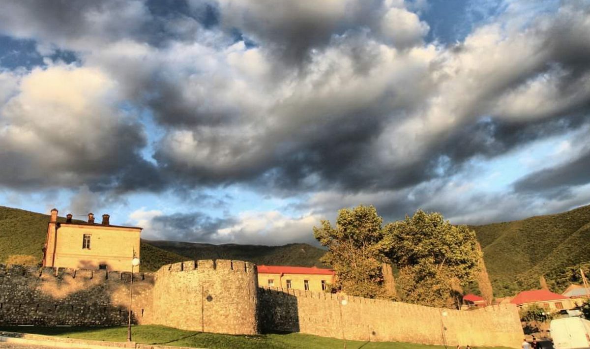 Шекинский хан Гаджи Чалаби (1743-1755 ) в период своего царствования построил на северо-востоке крепость для обороны города. Общая длина крепостной стены около 1300 метров, высота около 8 метров на юге и 4 метров на севере. Толщина стены более 2 метров. Вдоль нее на всем протяжении была расположена 21 защитная башня. С севера и юга крепость была закрыта арочными воротами. Высота крепости над уровнем моря 750 метров - на севере и 710 метров - на юге.