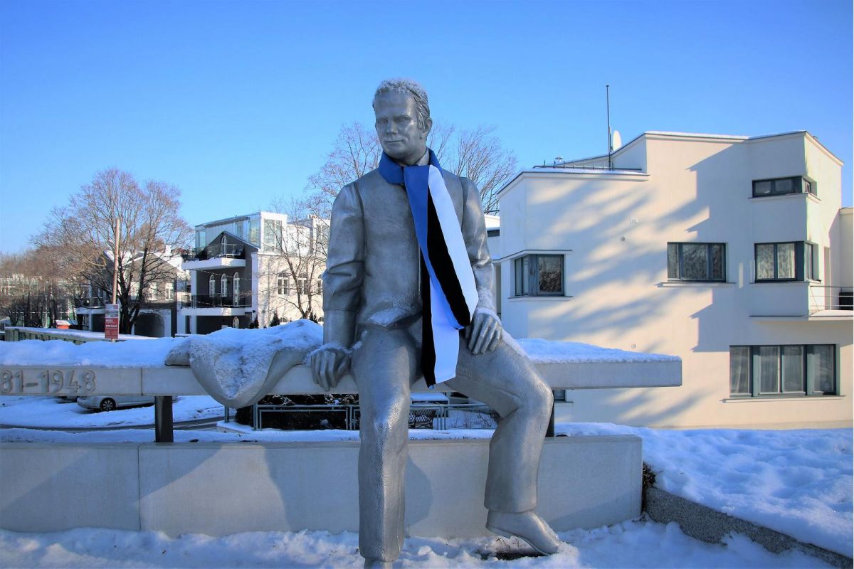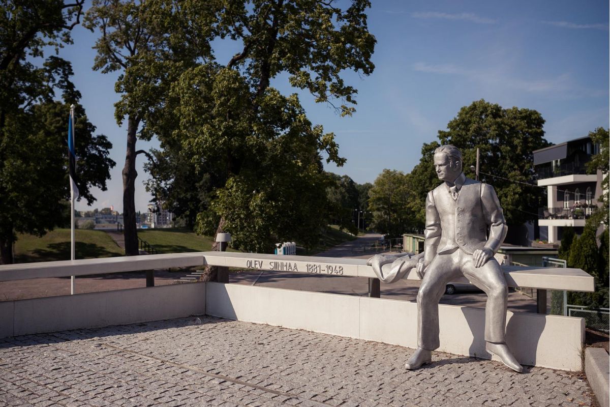 Олев Сийнмаа более 20 лет являлся архитектором города Пярну перед Второй мировой войной. Им спроектированы многие формирующие городской пейзаж Пярну образцы функциональной курортной архитектуры, такие как Пярнуская грязелечебница, прибрежный отель и прибрежное кафе. Памятник, на котором Сийнмаа изображен в возрасте примерно 40 лет, находится на склоне пярнуского рва Валликяэр, перед его бывшим домом. Скульптура изображает Сийнмаа отдыхающим на скамейке в парке.
