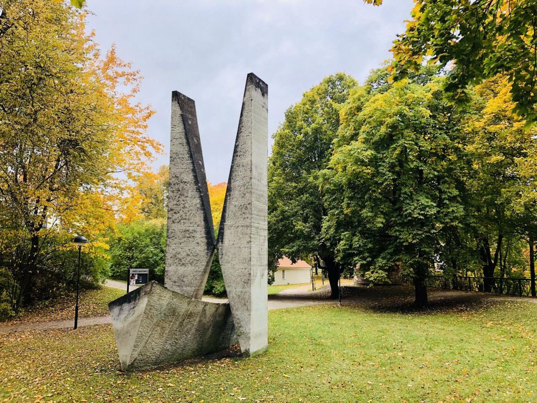 Монумент представляет собой абстрактное произведение в духе своей эпохи, отражающее устремление человеческой мысли в космос. Нижняя часть скульптуры напоминает солнечные часы, а верхняя часть – песочные часы. Авторы монумента – Олав Мянни и Удо Иваск.