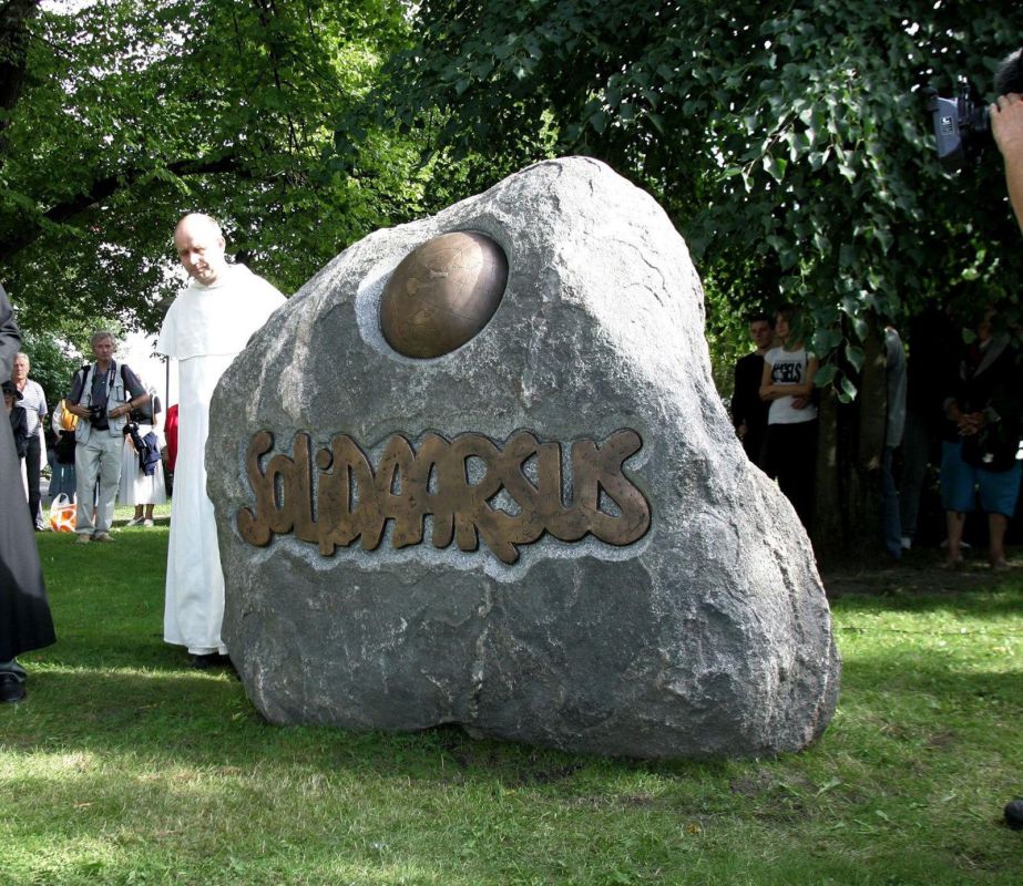 Камень солидарности посвящен польскому народному движению „Solidarność", сыгравшем большую роль в сокрушении коммунистического режима.