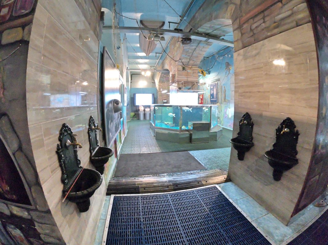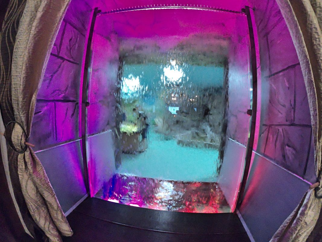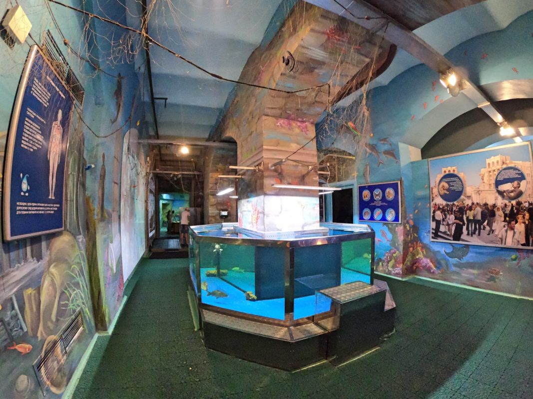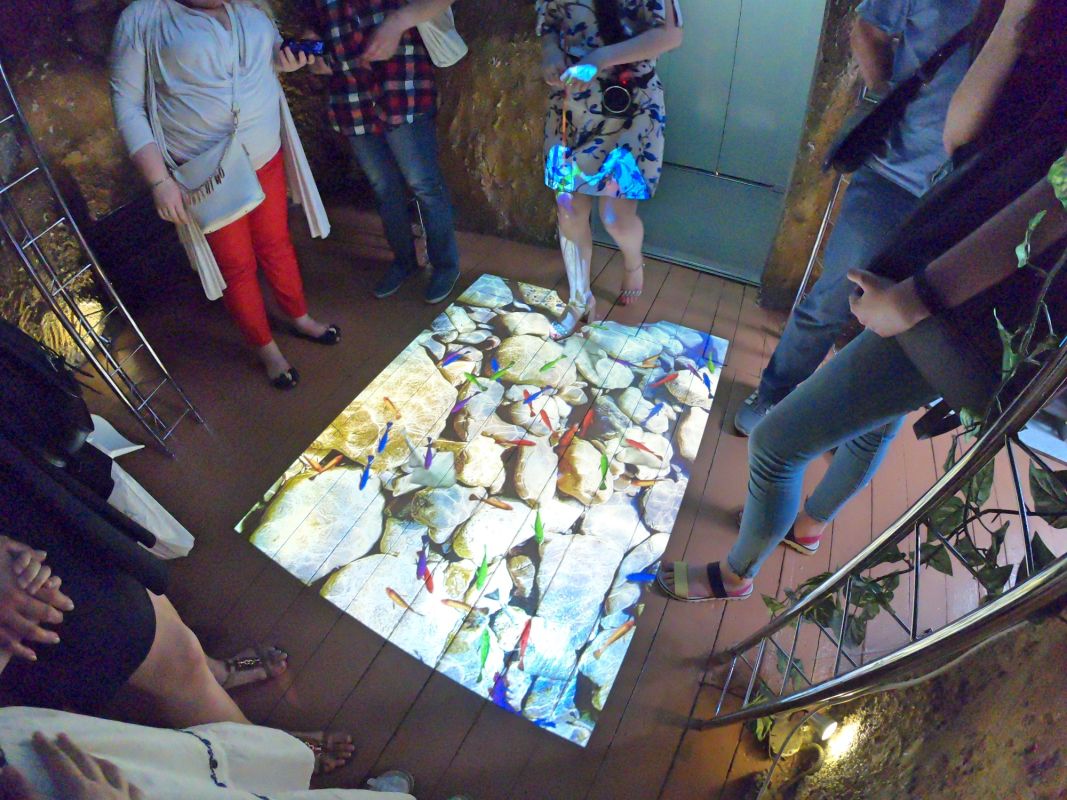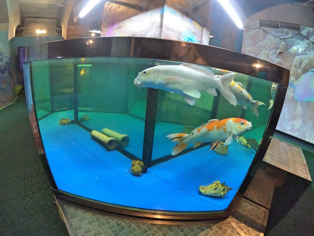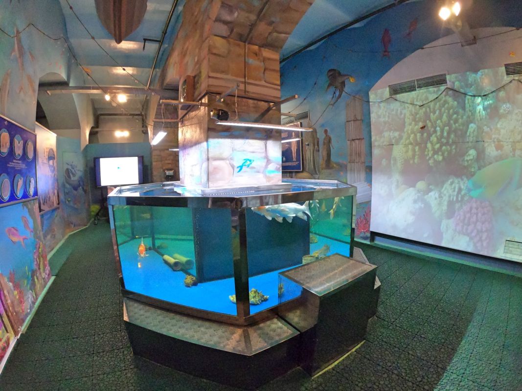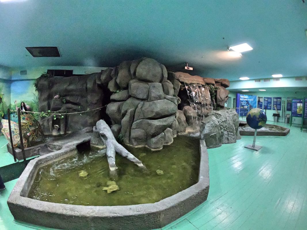 Вся экспозиция Музея воды находится под землей, куда спускается специальный лифт. Это огромные аквариумы, большой бассейн с японскими рыбками, действующая модель артезианской скважины, канализационный коллектор, грот с водопадом. Можно увидеть и услышать искусственный гром, увидеть, как тают ледники, идет дождь, и даже понаблюдать за извержением гейзера.