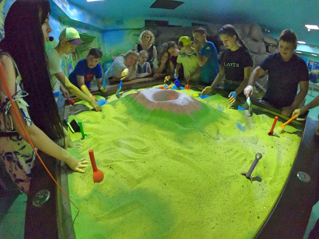 Не менее интересным является аттракцион с мыльными пузырями и детская площадка, где взяв в руки лопатки, детвора может самостоятельно вырыть в песке русло для реки.