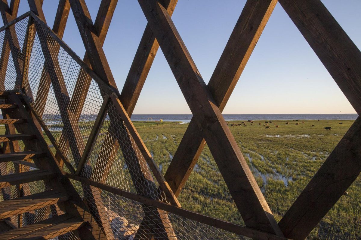С вершины вышки для наблюдения за птицами, построенной на пярнуских прибрежных лугах, в конце улиц Папинийду и Хирве, хорошо наблюдать за птицами и любоваться морским заливом.