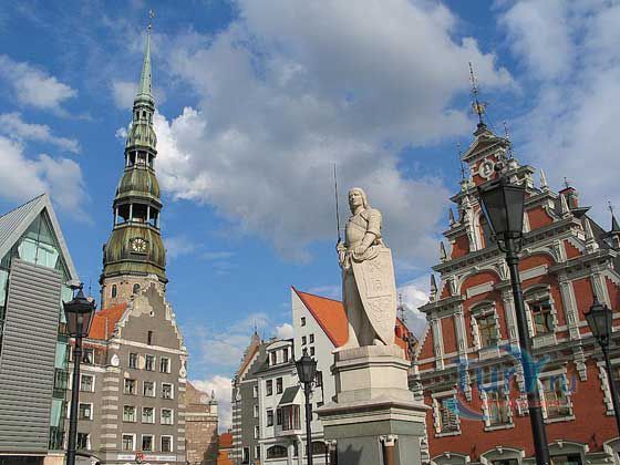 Ратушная площадь - это самое сердце, исторический центр и визитная карточка Риги. Изначально на этом месте находился городской рынок, поэтому на протяжении всего тринадцатого века эта площадь называлась Рыночной. На протяжении последующих ста лет торговые ряды с площади были вытеснены, территория площади расширена, а вокруг нее появились новые здания, в числе которых были Новый Дом, впоследствии переименованный в http://www.tury.ru/sight/id/3204 и Ратуша. Помимо мясных и хлебных лавок, а также мастерских ремесленников, которые продолжали располагаться на площади даже после строительства Ратуши, площадь сохранила функции общественного центра. На протяжении всего периода средневековья на площади проходили карнавальные шествия, гвардейские смотры, городские состязания на звание лучшего защитника, а также все городские праздничные мероприятия. В 1896 году на Ратушной площади установили статую покровителя средневековых городов – Роланда, который являлся эмблемой экономически и политически независимого города с развитой судебной системой и со свободным рынком. В настоящее время гранитная статуя последнего рижского Роланда хранится в церкви Святого Петра. Что касается центральной точки Ратушной площади, то она занята копией, выполненной к 2005 году.