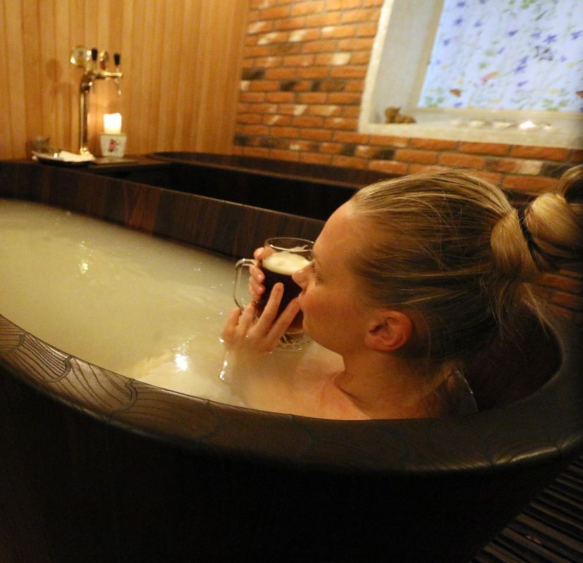 В нашем пивном спа можно укрепить свое здоровье и снять стресс в парной бане с дровяным отоплением и пивных ваннах, где прямо в ванне можно отведать живое пиво ручной работы, и к нему хороший выбор закусок.