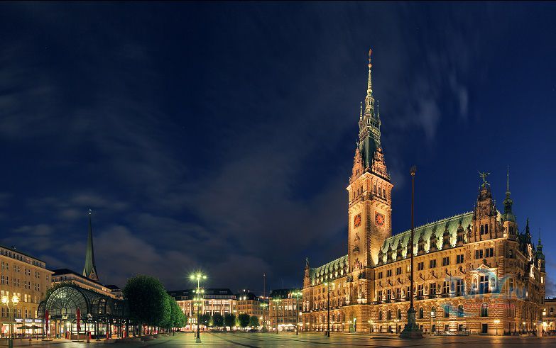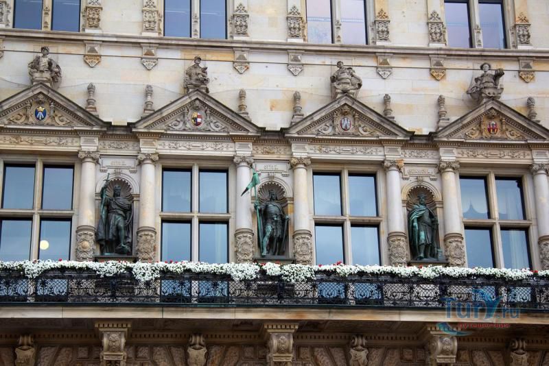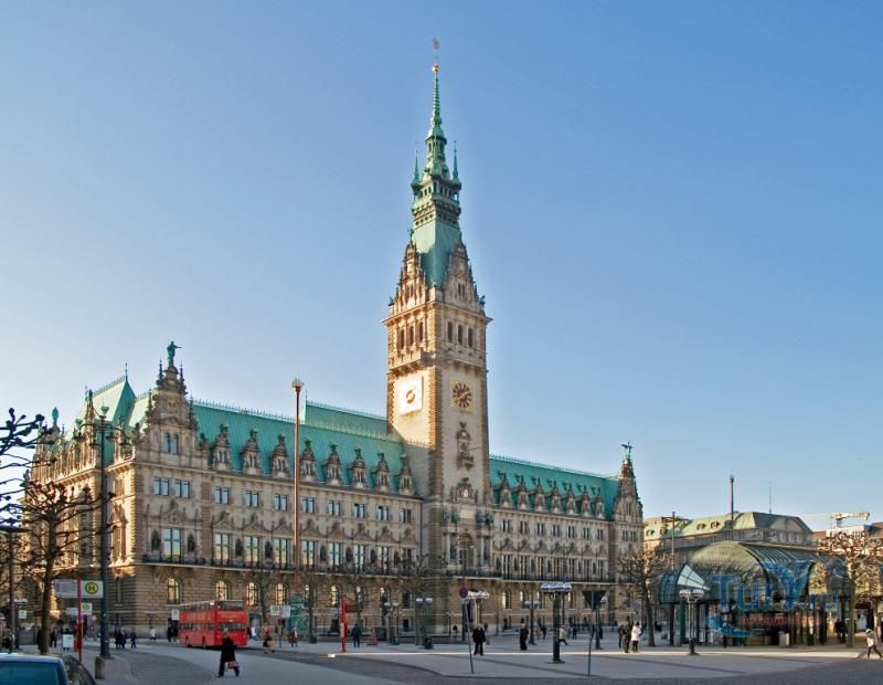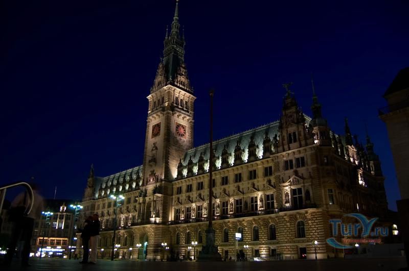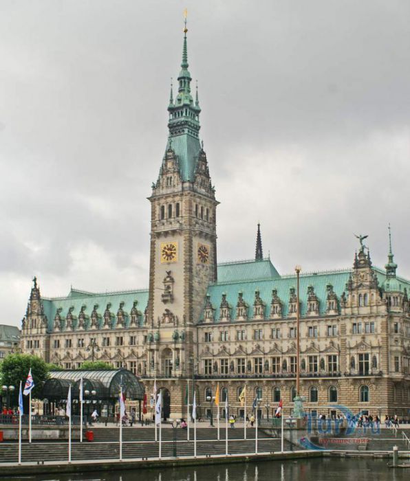 Ратуша, или правильнее Новая Ратуша — одна из главных достопримечательностей Гамбурга. Здание ратуши весьма символично располагается в самом сердце Старого города, ведь это центр власти и общественного устройства Гамбурга. В 1842 году городская ратуша была полностью разрушена пожаром, и сенату пришлось переехать во временные апартаменты, где он и заседал последние 55 лет. Строительство новой ратуши было завершено в 1897 году. Это элегантное здание в стиле нео-ренессанс с башней высотой 112 метров. Ратуша вмещает 647 комнат и покоится на 4000 дубовых сваях. И хотя классическому ганзейскому стилю была свойственна простота, ратуша отличается дорогой отделкой фасада, который увенчан 20 статуями кайзера. Внутреннее убранство не менее роскошно. Особенно грандиозный Зал кайзера с редкими кожаными обоями. Кроме того, в одном из залов Ратуши хранится огромная Золотая книга, где оставили автографы такие знаменитости, как Бисмарк, Шарль де Голль, принцесса Диана и королева Елизавета.