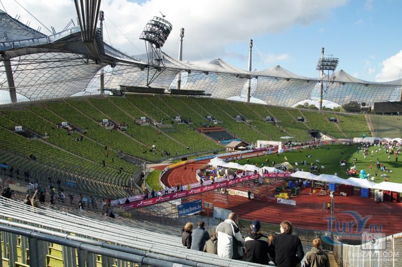 Мюнхен очень серьезно готовился к летним олимпийским играм 1972 года. Было развернуто широкомасштабное строительство как спортивных, так и развлекательных объектов. Одним из них стал Олимпийский парк – огромный спортивный комплекс на севере города, включающий в себя олимпийскую башню, стадион, открытую арену, пресс-центр, а также площадки для различных видов спорта. Олимпийский стадион был главной ареной ХХ летних Олимпийских игр. Сегодня Олимпийский парк, Олимпийская башня и Олимпийский стадион являются одними из самых узнаваемых символов города. Спроектированный Гюнтером Бенишем и Фраем Отто, стадион считался революционным для своего времени. При строительстве были использованы большие навесы из акрилового стекла и стальные тросы. Широкий и прозрачный купол должен был символизировать новую, демократическую и оптимистичную Германию. Строительство стадиона общей вместимостью 70 000 мест началось в 1968 году. После Олимпийских игр и вплоть до 2005 года стадион использовался футбольными клубами «Бавария» и «Мюнхен 1860» для проведения своих домашних игр. В 1974 на Олимпийском стадионе проходили матчи Лиги Чемпионов, включая финальную встречу соревнований. В 1988 году здесь проходил финальный матч чемпионата Европы между футбольными командами Нидерландов и СССР. Олимпийский стадион трижды принимал финалы самого престижного клубного футбольного турнира Европы – в 1979, 1993 и 1997 годах.