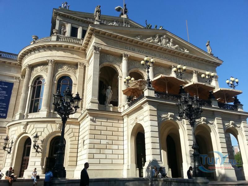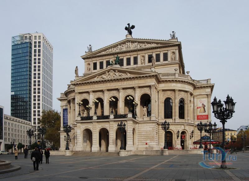 Старая Опера – архитектурная жемчужина Фанкфурта-на-Майне, построенная в конце девятнадцатого века по проекту Рихарда Луке. На её открытие в 1880 году из Берлина специально приезжал кайзер Вильгельм I. Здание в стиле неоренессанса с двойным фронтоном, множеством статуй по всему фасаду и девизом: «Истинному, прекрасному, доброму», было практически полностью разрушено во время Второй мировой войны. В таком виде Старая Опера и простояла почти пол века, получив неофициальное название «самые прекрасные руины Германии». Однако, в конце семидесятых годов прошлого века, под давлением жителей Франкфурта, здание оперы все-таки было восстановлено, и в 1981 году Старая Опера вновь приняла зрителей и стала неотъемлемой частью городской культурной жизни. Фасад и холл здания были воссозданы в своем историческом виде, однако остальные помещения оперы были разработаны с использованием современных архитектурных требований.