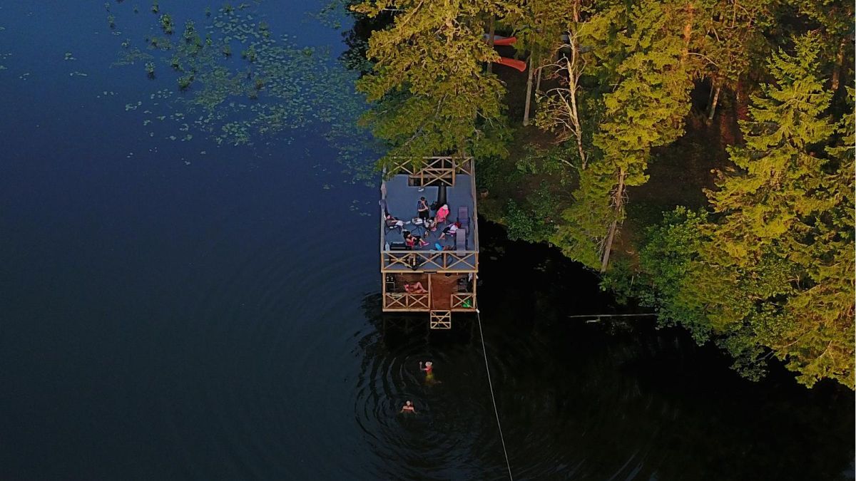С лета 2017 года мы предлагаем у домов отдыха Тику возможность аренды бани на плоту. Баня на плоту вмещает приблизительно 10 человек.