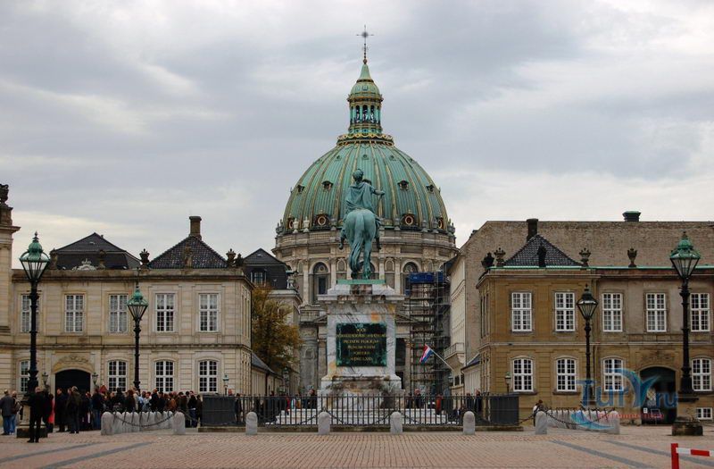 Амалиенборг - самый посещаемый замок страны, включает в себя четыре почти одинаковых здания, окружающих восьмигранную площадь, в центре которой стоит величественный памятник основателю Амалиенборга королю Фредерику V. Конная скульптура Жака Франсуа Сали считается одной из самых красивых и уникальных в мире, над её созданием скульптор работал около 20 лет.