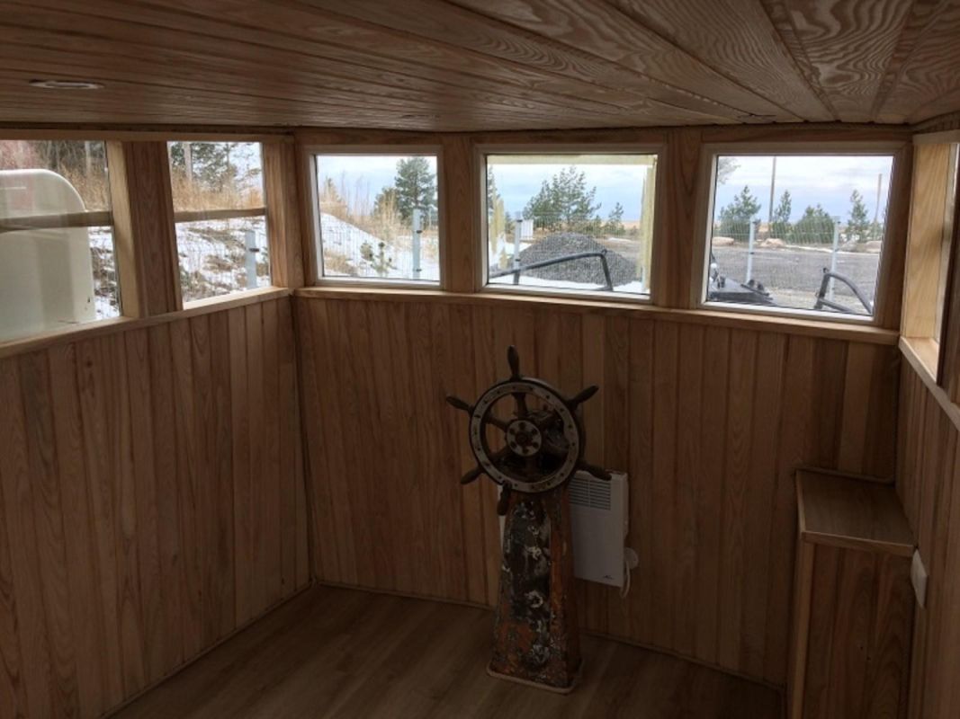Банные радости в бане, построенной на старом рыбном тральщике, который находится на площадке яхтенного порта Пуртсе и благодаря своей прекрасной форме корпуса позволяет посетителям бани почувствовать себя капитаном, севшим на мель в бурном море.