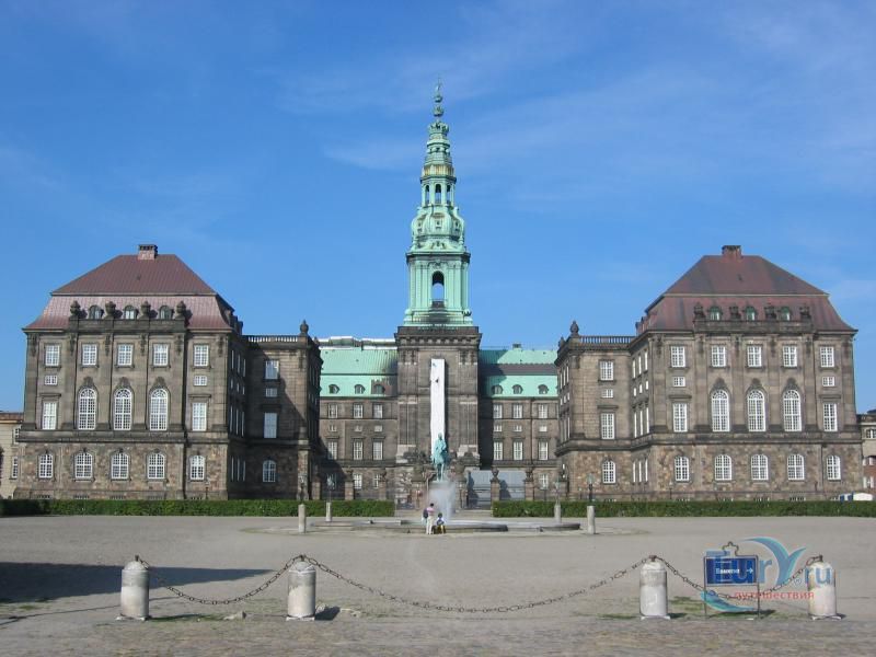 Дворец расположен на месте древней крепости, которая была построена епископом Абсалоном в 1167 году при основании Копенгагена. Руины этой крепости сохранились и их можно посмотреть, спустившись в подвалы дворца. Дворцовый комплекс, первые постройки которого были возведены в начале XVIII века, неоднократно перестраивался, и то что мы видим сегодня, было построено в период с 1907 по 1928 год в стиле нового барокко. Дворец Кристиансборг стоит на острове, называемом Дворцовый остров. Общая длина каналов, окружающих дворец, составляет около 2 км, через них перекинуто 8 мостов, соединяющих дворец с Копенгагеном. Сейчас во дворце Кристиансборг заседает парламент Дании (Фолькетинг). Кроме этого во дворце расположены Верховный суд, ведомство премьер-министра Дании, Королевские Приемные и Большой зал. Королевские Приемные расположены в северной части дворца Кристиансборг и включают Частную библиотеку Королевы, Палаты для Аудиенций, большой Королевский зал и Тронный зал. И трон и интерьеры были спасены во время пожара 1884 года, уничтожившего остальной дворец. Рядом со зданием парламента расположены Королевская библиотека, театральный музей и королевский музей "Арсенал" с коллекцией старинной одежды, карет и огнестрельного оружия. Там же находятся до сих пор действующие королевские конюшни и плац для выездки.