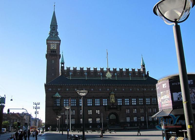 Последний вариант городской ратуши (её перестраивали шесть раз), был возведен в 1905 году. Стиль, в котором выполнено здание, очень характерен для Копенгагена. Ратуша построена из красного кирпича и возвышается на 105,6 метра. Вместе с гидом, туристов пускают внутрь на экскурсии. Астрономические часы Йенса Ольсена (Jens Olsens Verdensur), сооруженные 15-го декабря 1955 года, продолжают отсчитывать время с удивительной точностью и по сей день. Погрешность их хода составляет всего 0,4 секунды в триста лет. Ратуша содержит статуи Ганса Христиана Андерсена и Нильса Бора (лауреат нобелевской премии в области физики). Кроме того, самые стойкие могут попробовать взобраться на самый верх городской ратуши – 300 ступеней и никакого лифта. Зато наградой послужит чудесный вид.